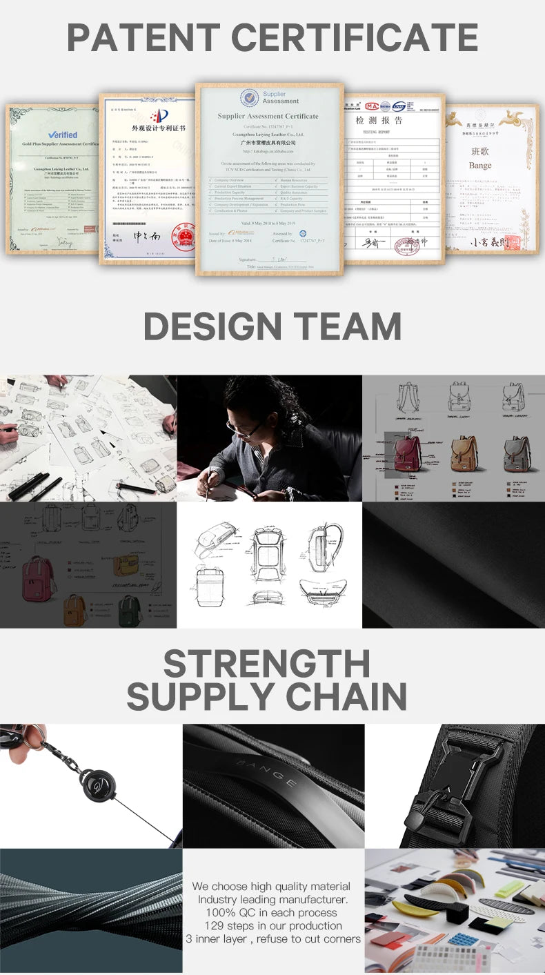 BANGE New Design Large Capacity Oxford Men 15.6 inch Laptop Backpack Softback Business Waterproof Backpacks with USB Charing