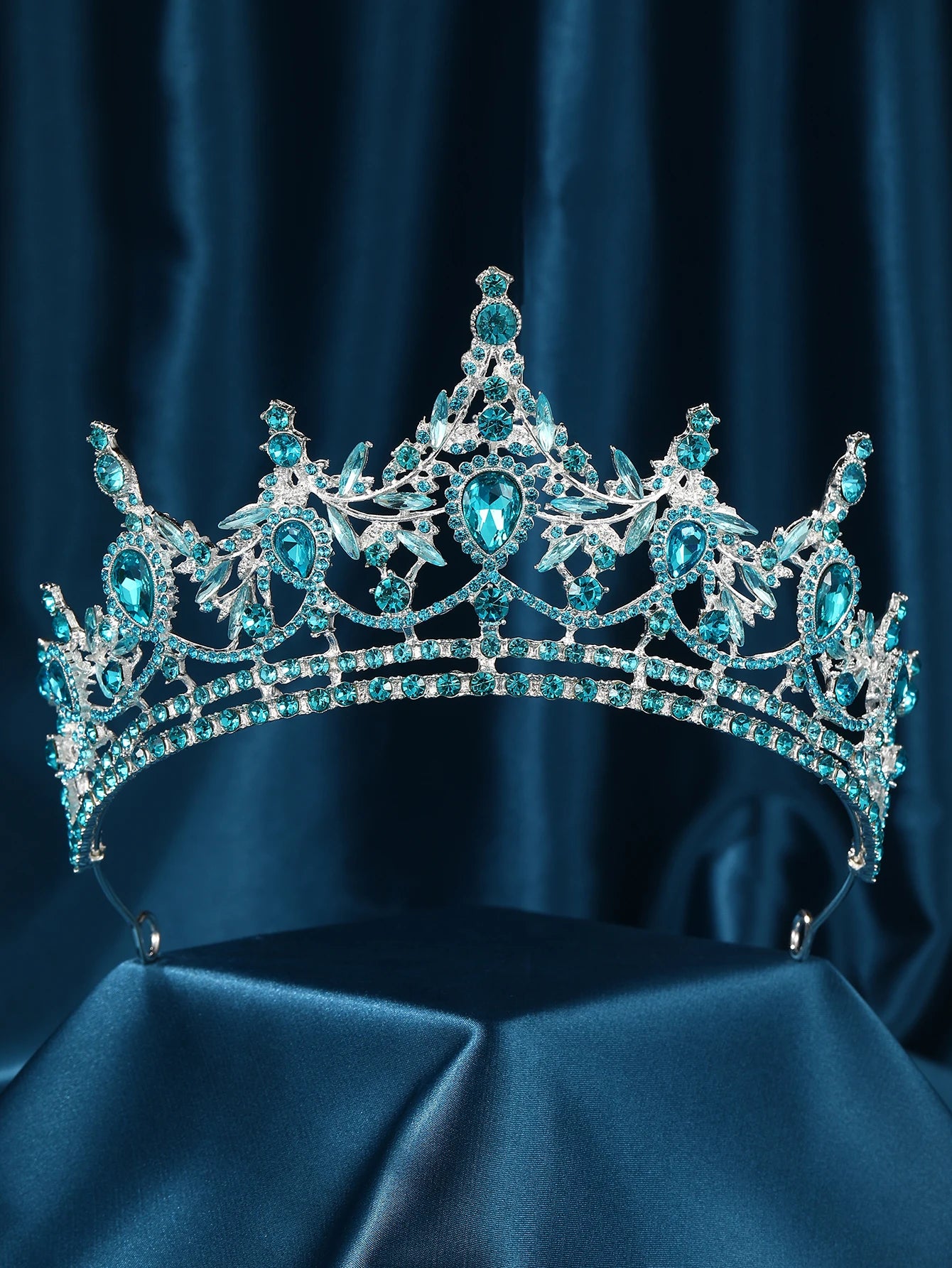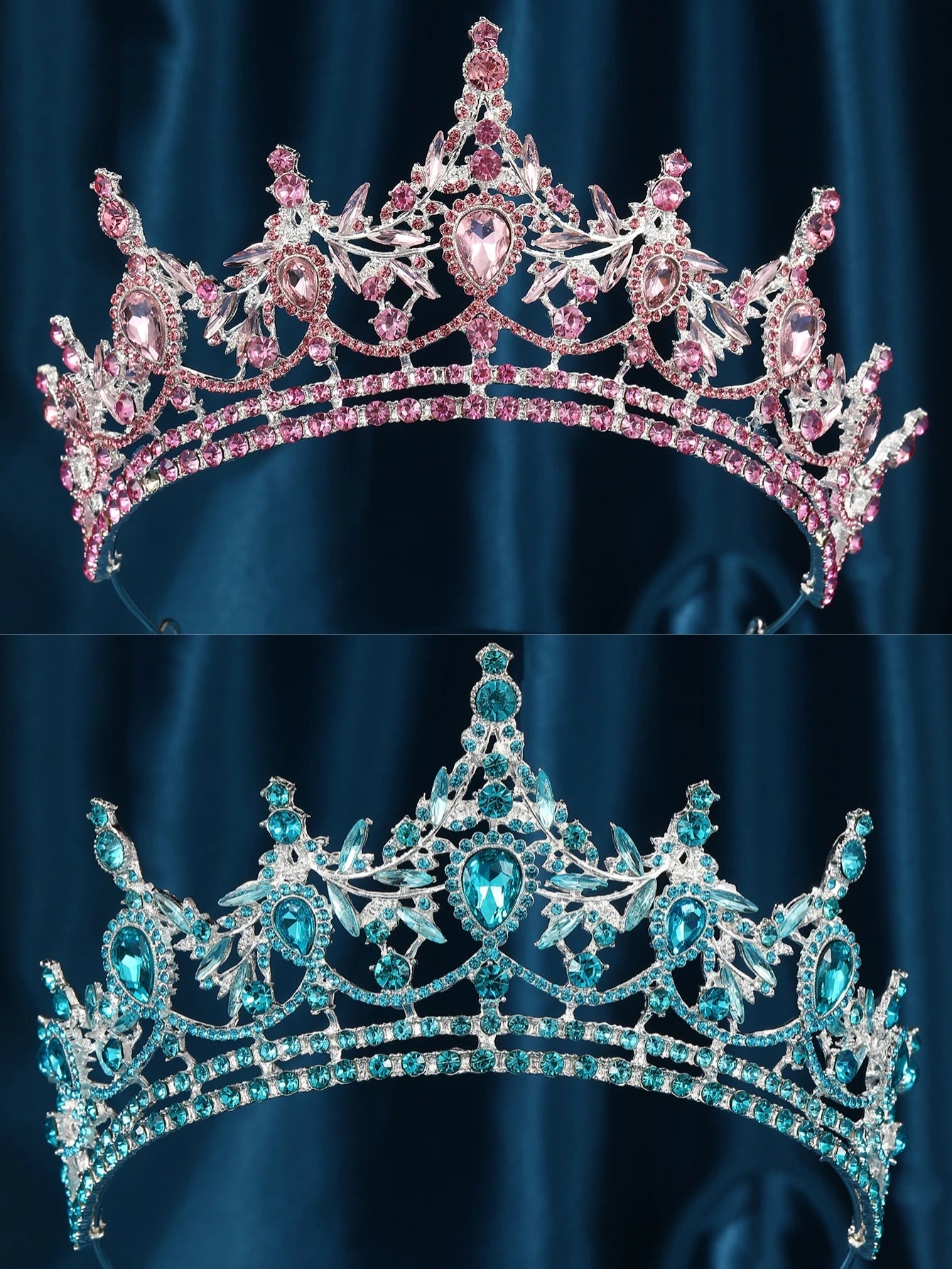 Baroque Retro Rose Water Drop Flower Crystal Bridal Tiara Crown Rhinestone Diadem Veil Tiaras Wedding Hair Accessories Headpiece