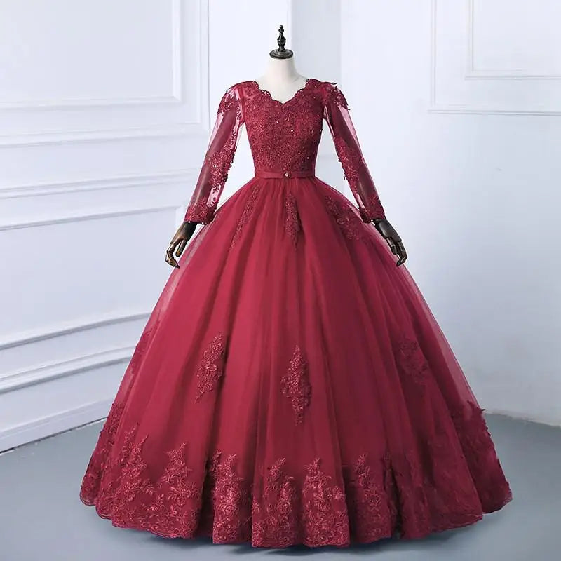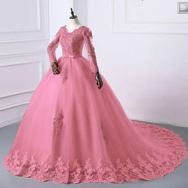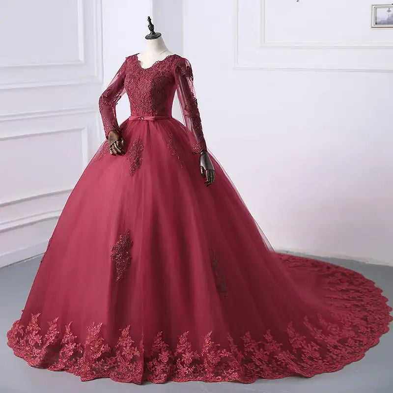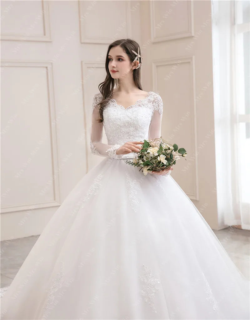 Best Selling 2024 Long Sleeve V Neck Lace Wedding Dress 2025 Vintage Bride Bridal Ball Gown Modest Wedding Dresses Customized