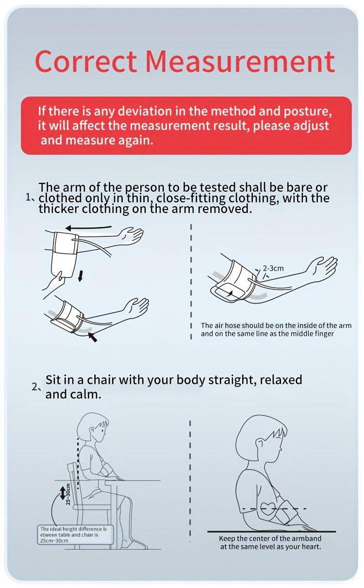 This blood pressure monitor features an advanced chip that ensures precise readings. When used correctly, it allows you to monitor your blood pressure regularly, offering health security for you and your loved ones.