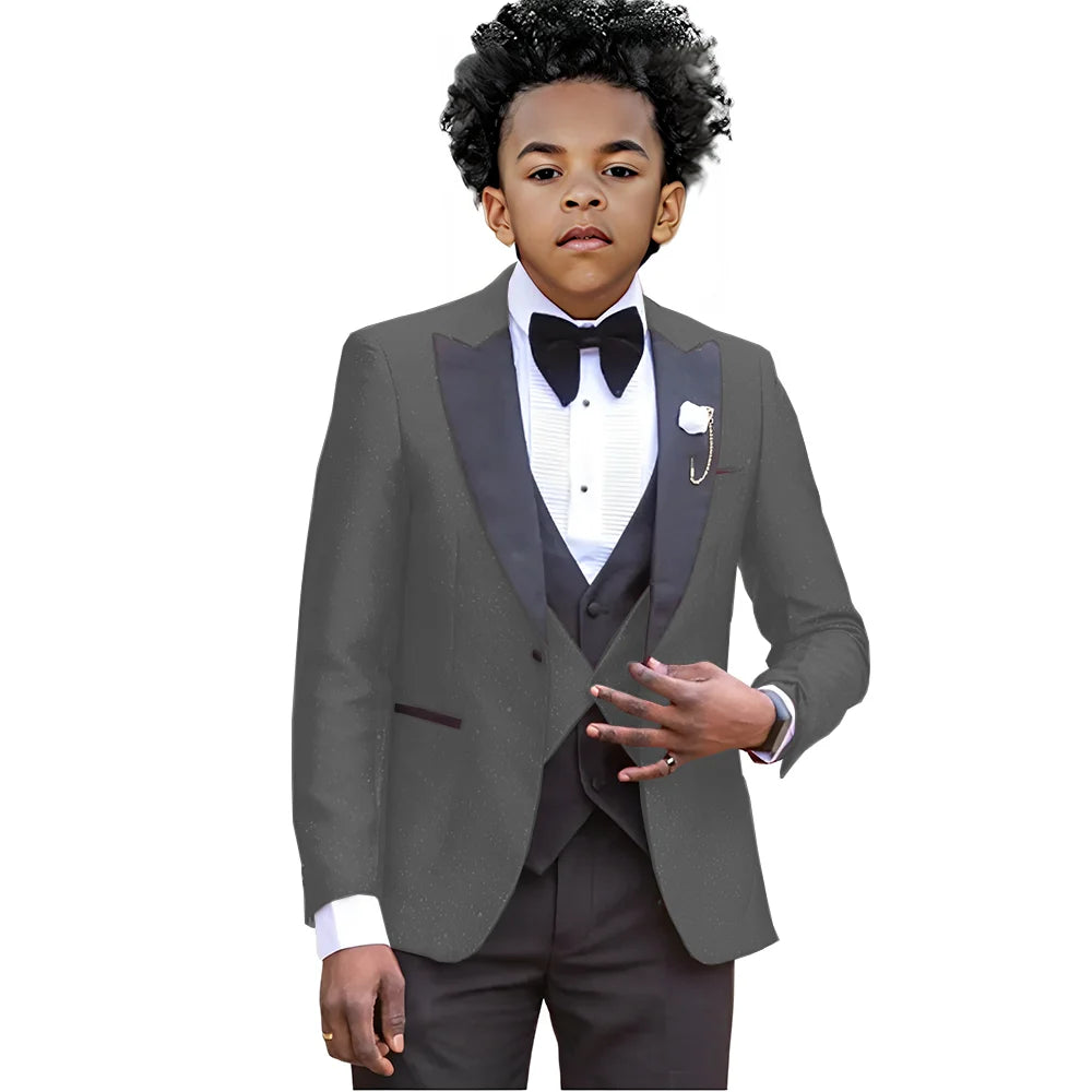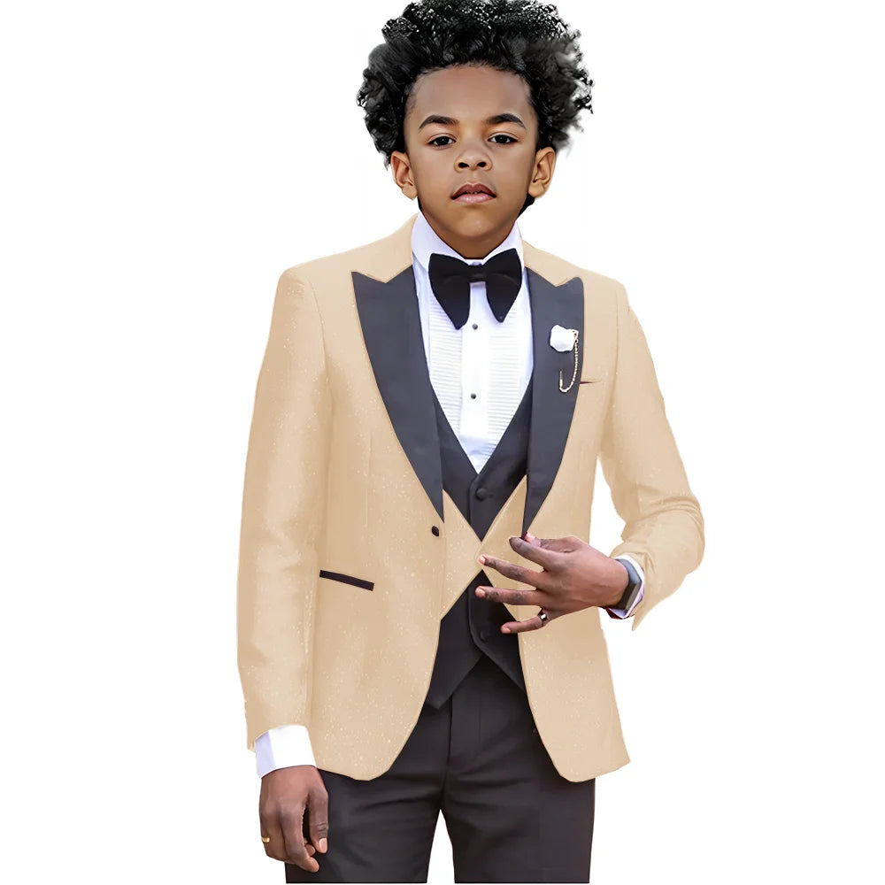 Boy Suits For Wedding Luxury Tuxedos 3 Pieces Slim Fit Boy Wear Party Prom Blazer Vest With Pants Custom Made