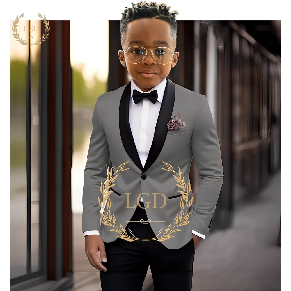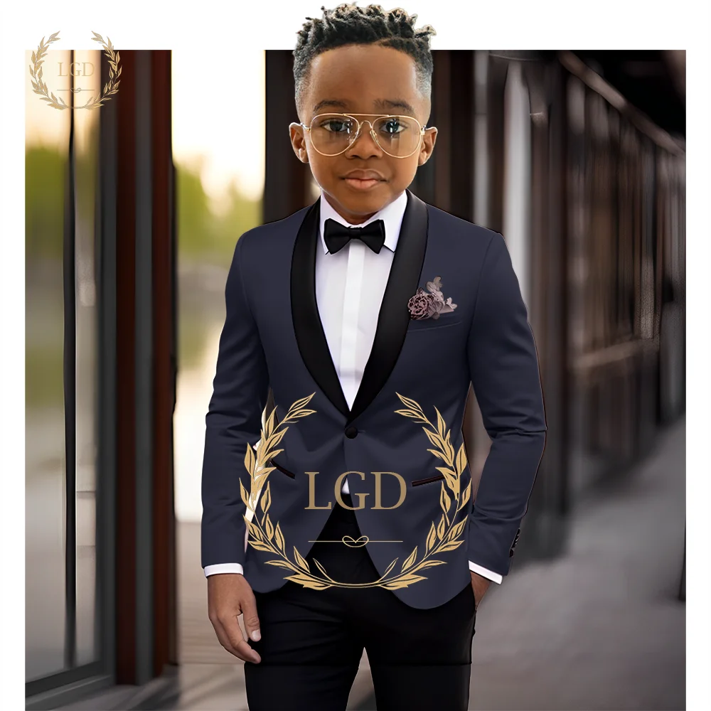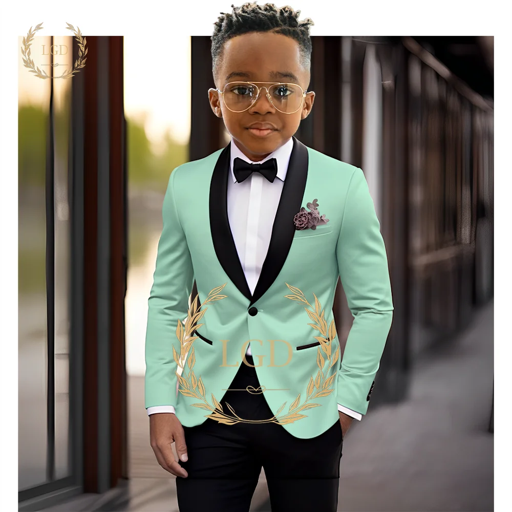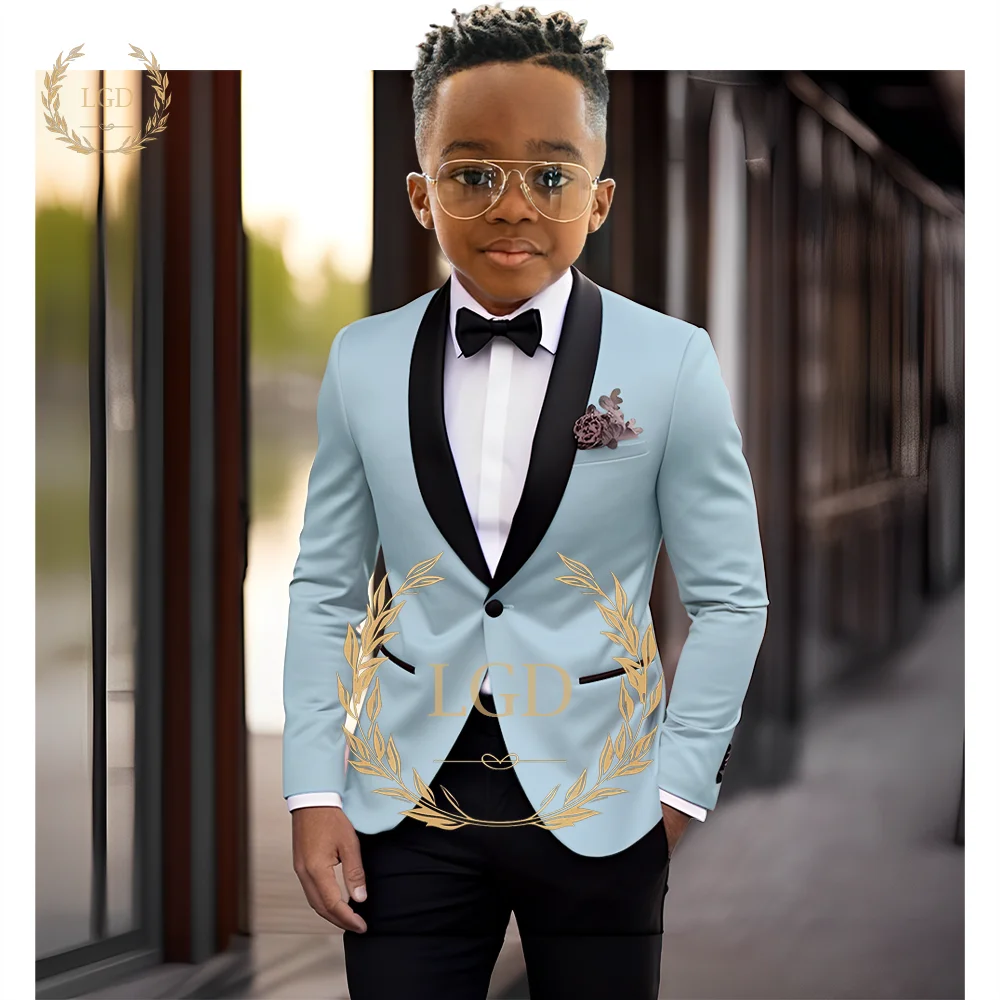 Boys' black shawl collar single button suit dress set 2-piece (jacket+pants) children's wedding party birthday tailcoat