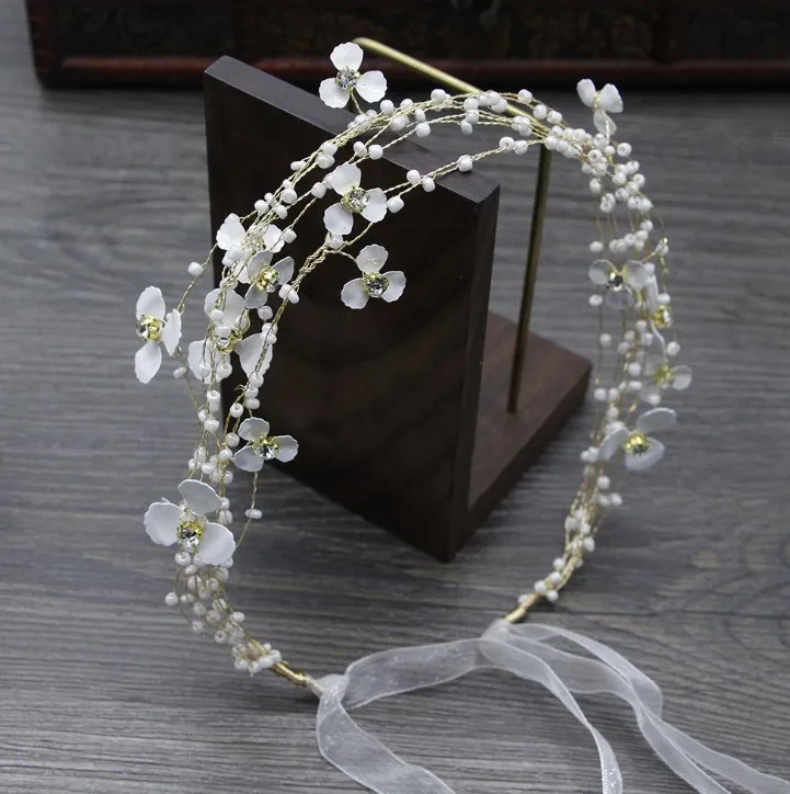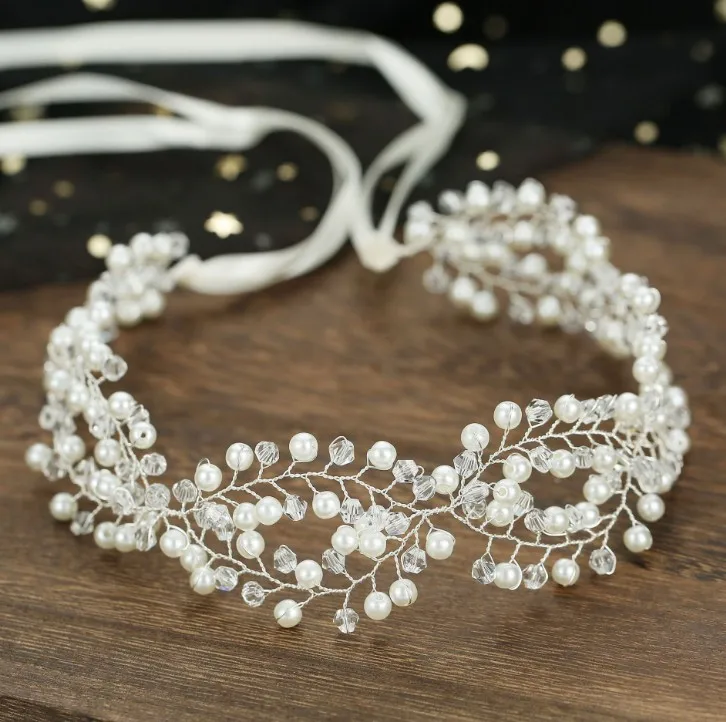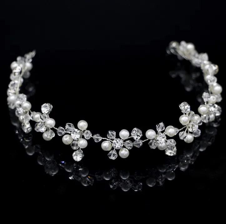 Bridal Bridesmaid Flower Girls Diamante Crystal Pearl Headband Rhinestone Wedding Prom Tiara Women Hair Accessories