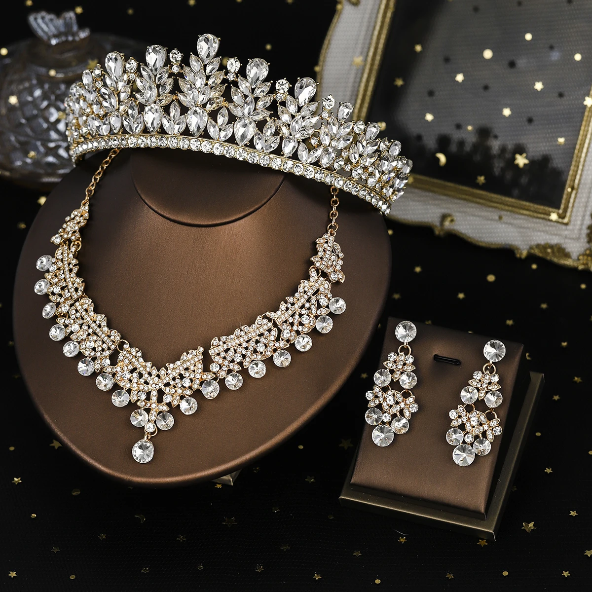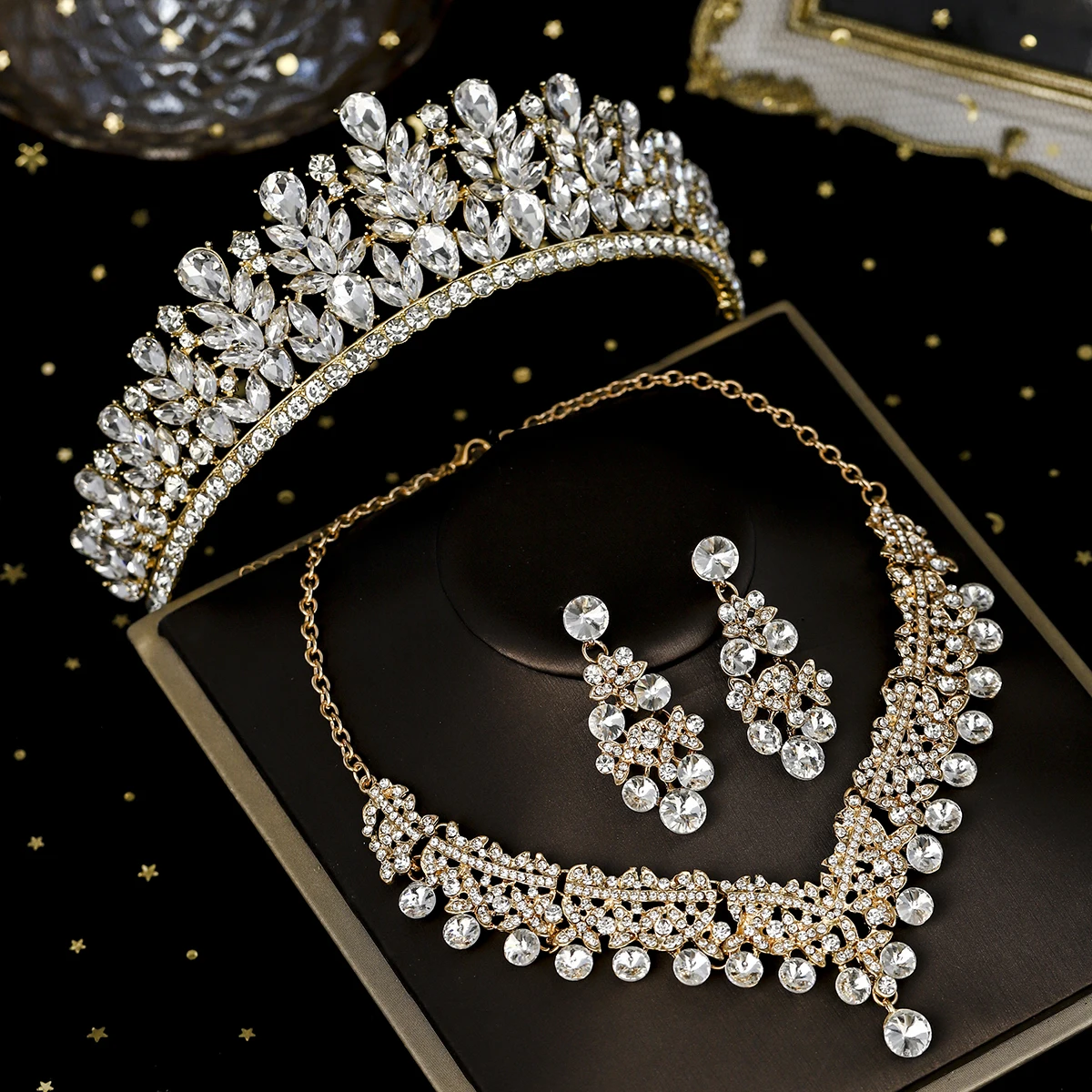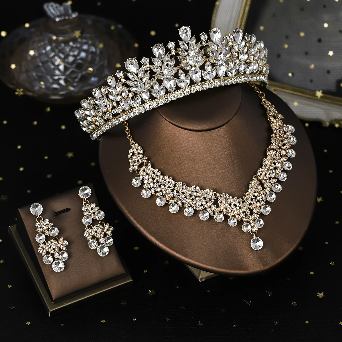 Bridal Wedding Elegant Headpieces Crystal Crown Tiara Classic Earrings & Necklace Set Jewelry Accessories Gifts for Friends