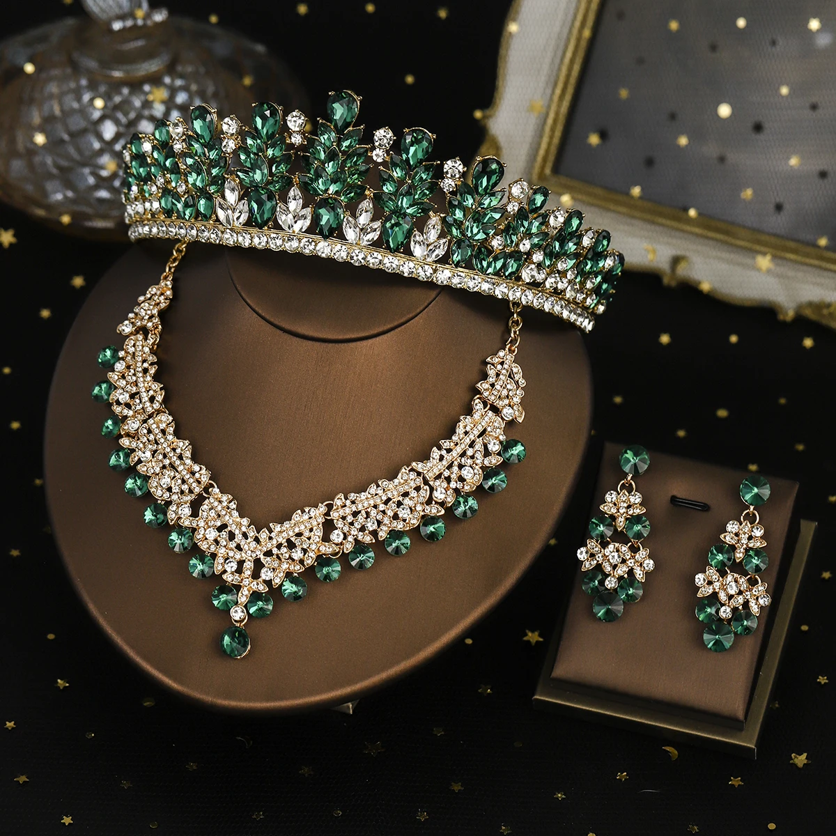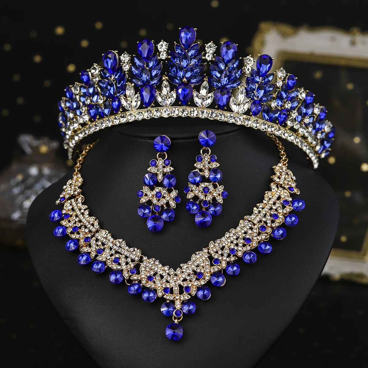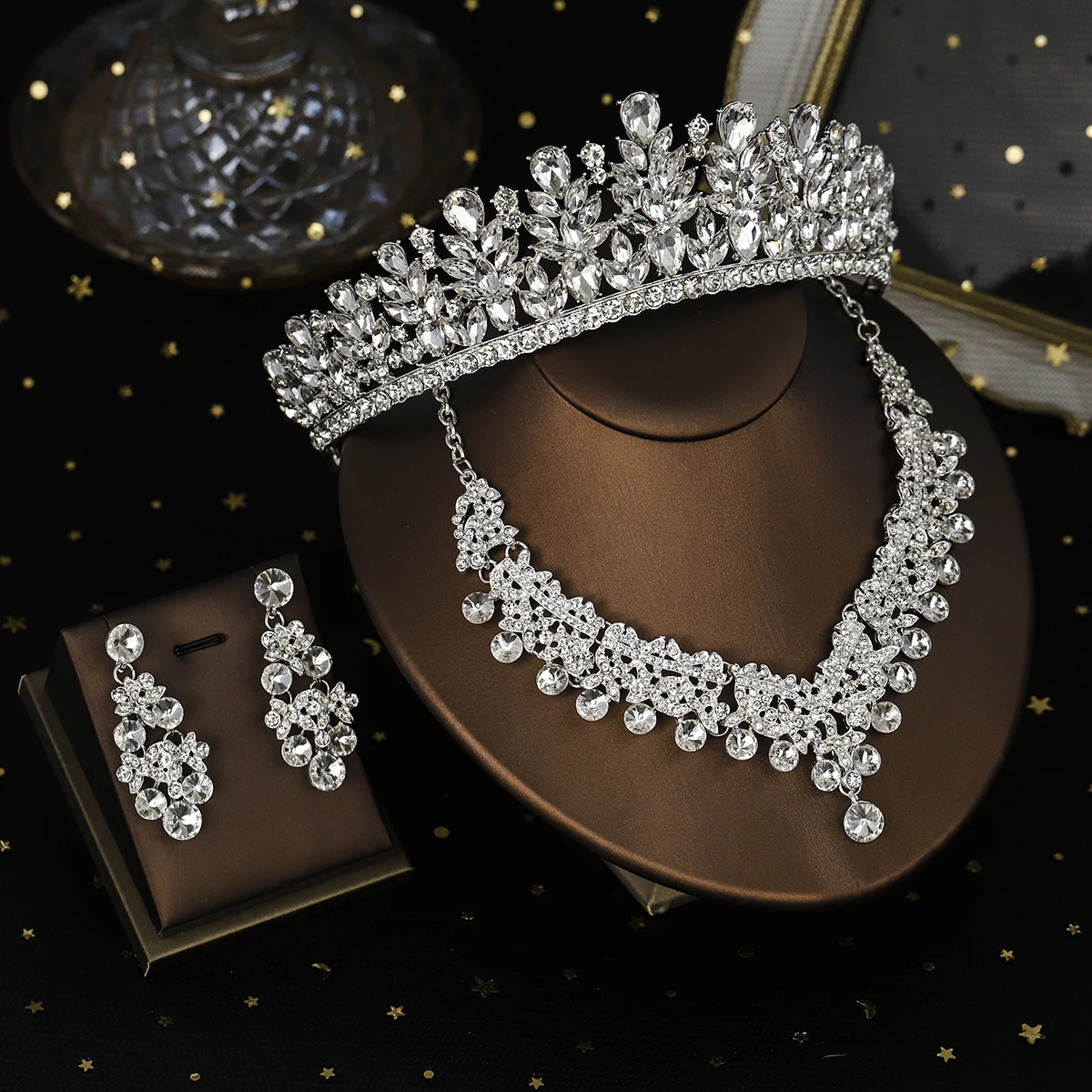 Bridal Wedding Elegant Headpieces Crystal Crown Tiara Classic Earrings & Necklace Set Jewelry Accessories Gifts for Friends
