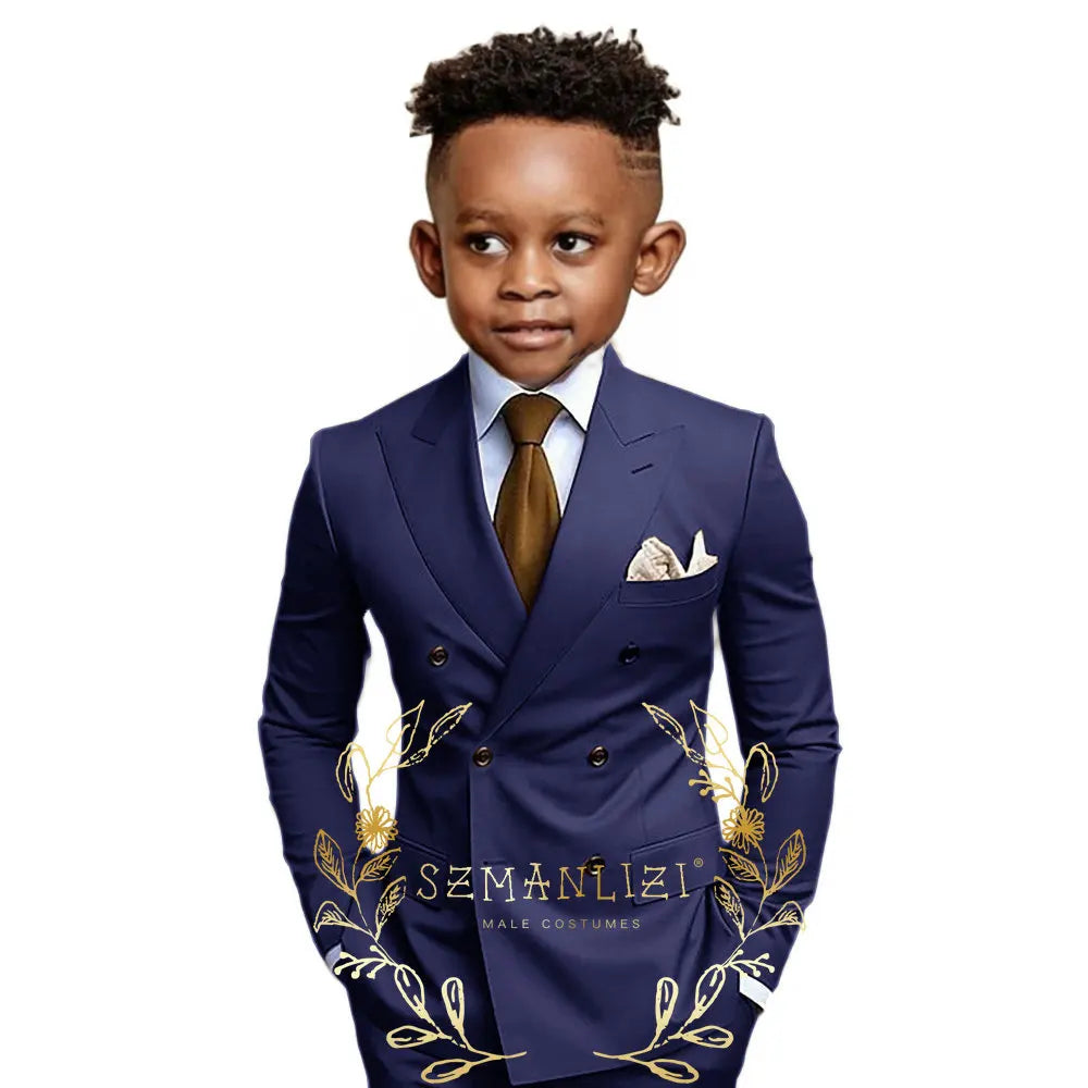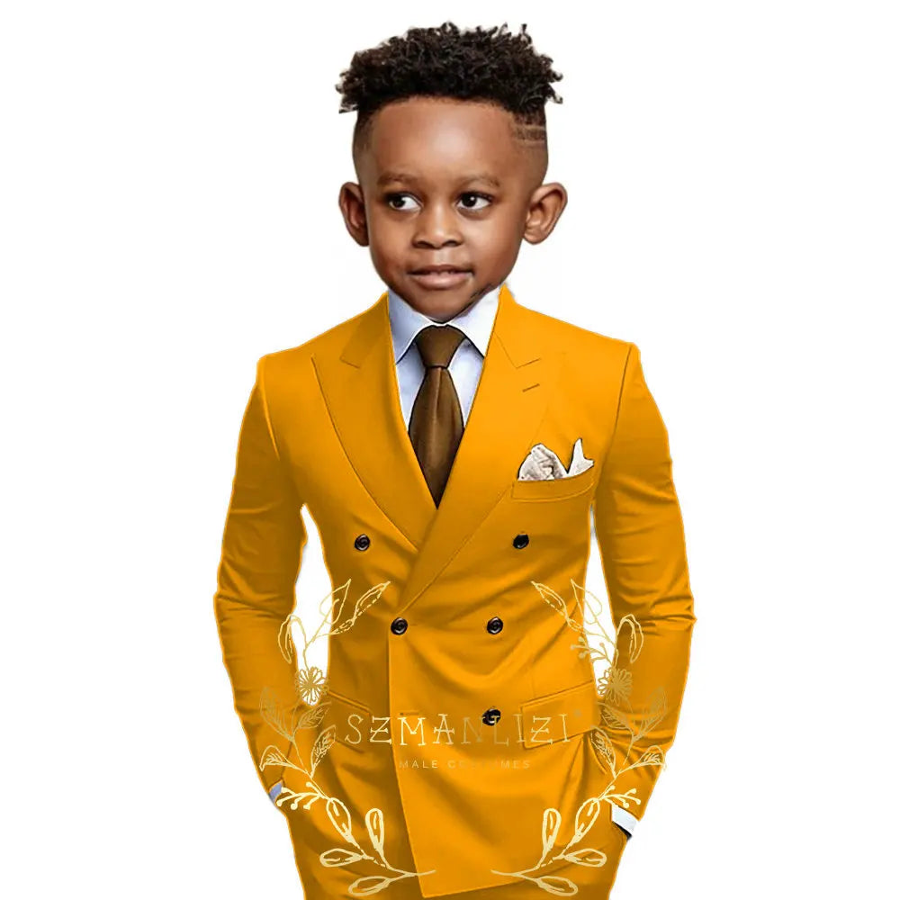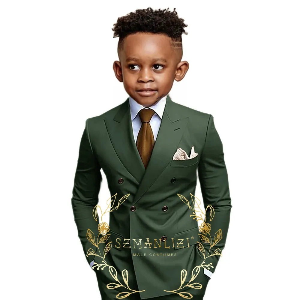 Brown Boys Suit Double Breasted Jacket Pants 2 Piece Set Business Style Formal Wedding Tuxedo Custom Size Blazer Kids