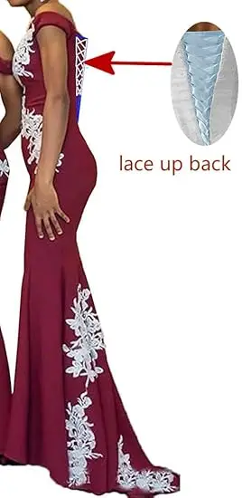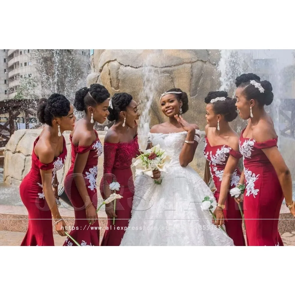 Burgundy Womens Off The Shoulder Mermaid Bridesmaid Dresses for Wedding Lace Satin Prom Dresses Long Formal Evening Gowns Africa