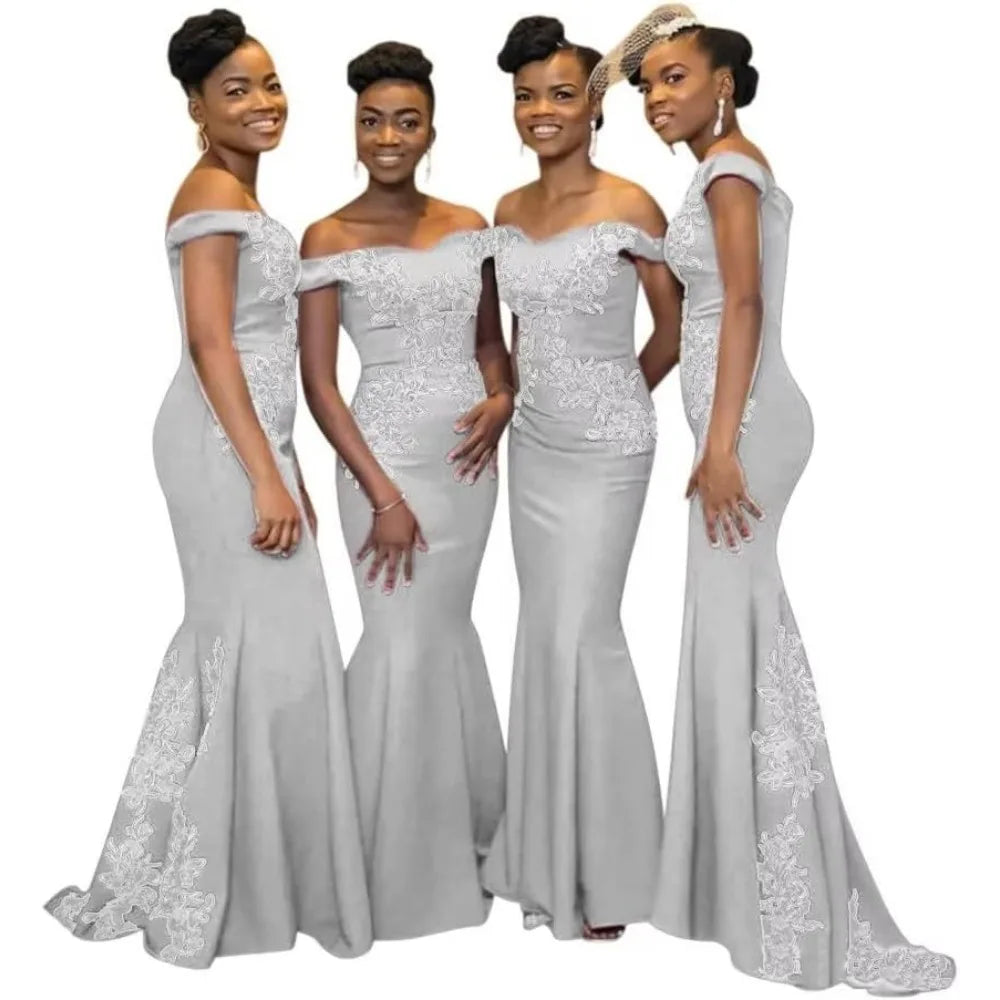 Neckline: Off Shoulder Bridesmaid Dresses for Women Mermaid Wedding Party Dress