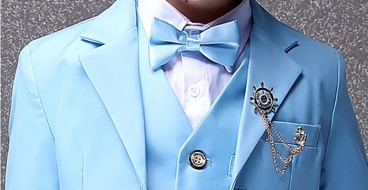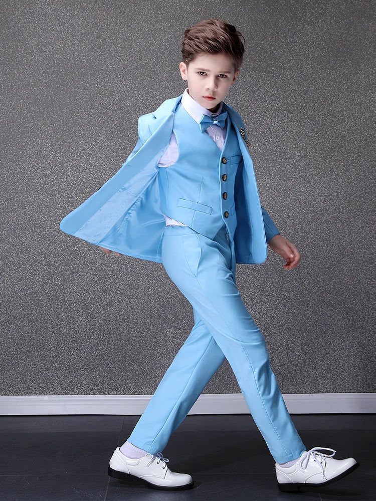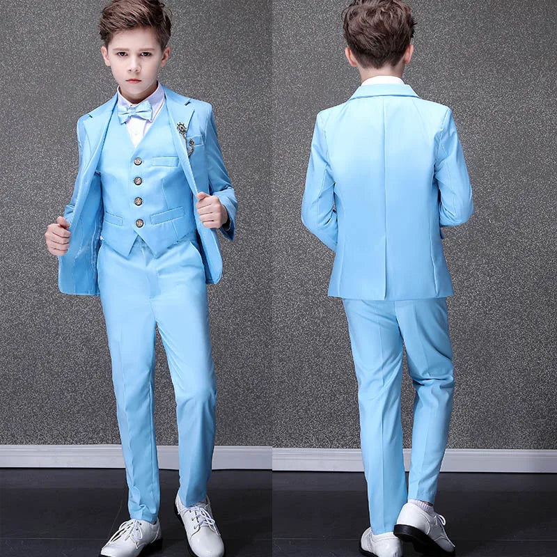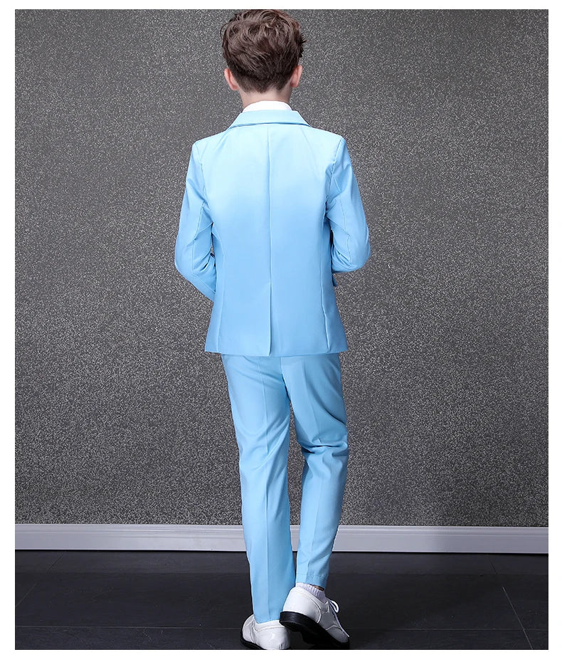 Children Sky Blue Photograph Suit Flower Boys Wedding Dress Kids Tuxedo Evening Party Wear Teenager Graduation Birthday Costume