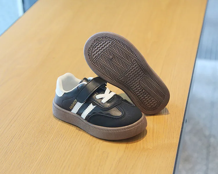 Children Spring Autumn Fashion Soft Soled German Training Shoes Boy Casual Board Shoes Girls Velcro Sneakers Striped White Shoes