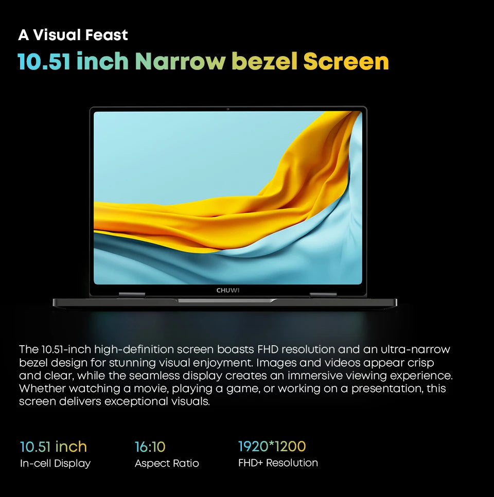 CHUWI MiniBook X Laptop Tablet 2 In 1 Intel N150 CPU 10.51" FHD IPS Screen 12GB LPDDR5 512G SSD Windows 11 Notebook 1200*1920