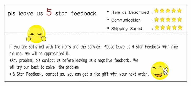 If you are not satisfied with the item, please feel free to contact me for a solution instead of leaving neutral or negative feedback, which means you don't need our after-sales service. We will try our best to solve the problem.