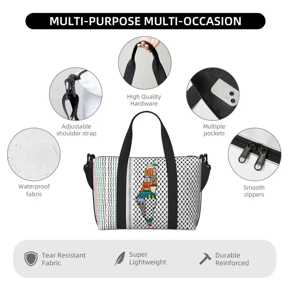 Custom Arabic Calligraphy Name With Palestinians Flag Hand Grocery Tote Shopping Bag Women Large Capacity Beach Gym Travel Bags