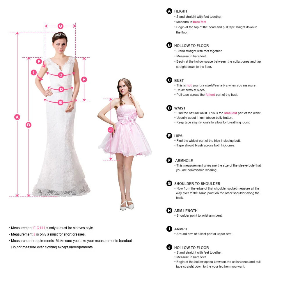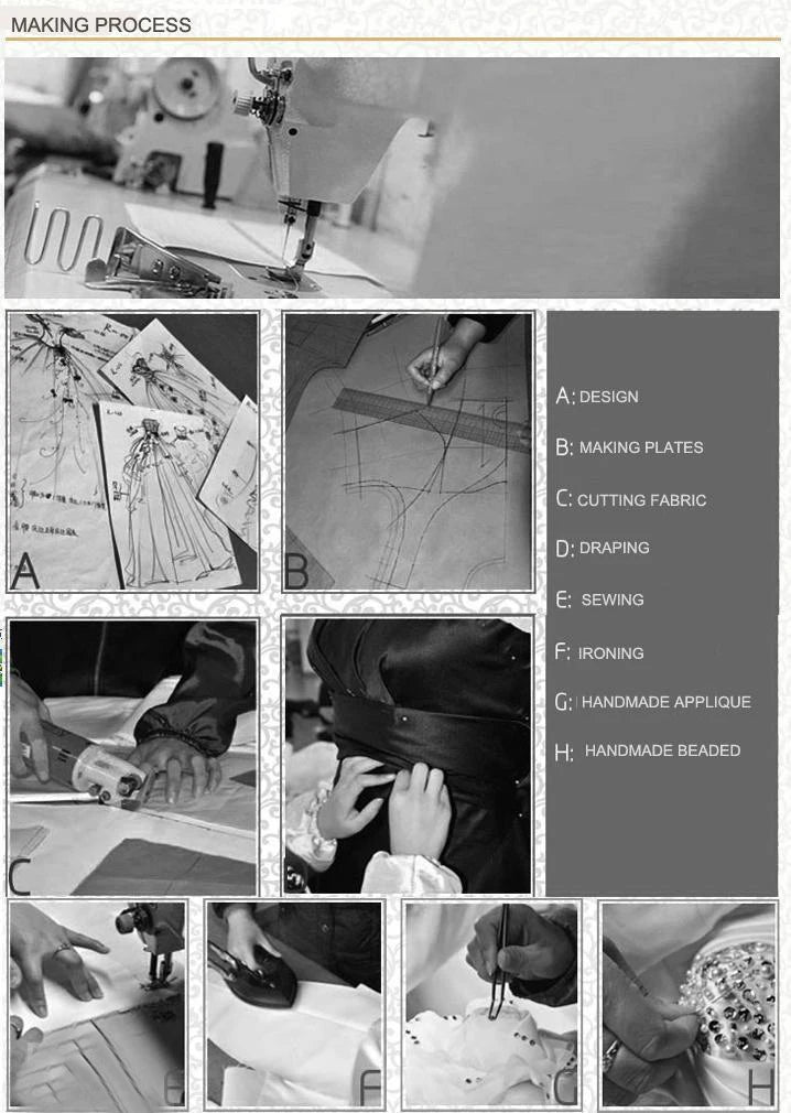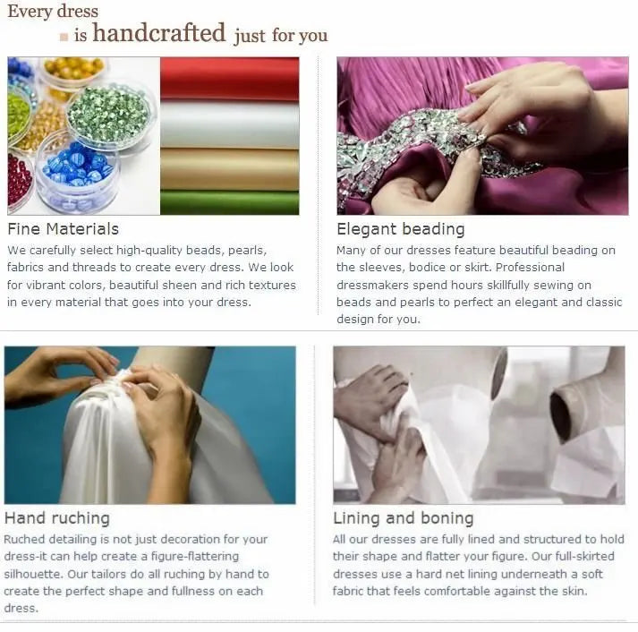 Upon the arrival of your package, we encourage you to check and make sure that the dress or clothing has been made to the standard size or custom measurements that you specified. Try on your dress or clothing as soon as possible without removing the tags, altering, or washing the dress. If you are returning or exchanging dresses, clothing, or accessories, please make sure they are in their original condition - unworn, unwashed, unaltered, undamaged, clean, free of lint and hair and with tags intact and attached.