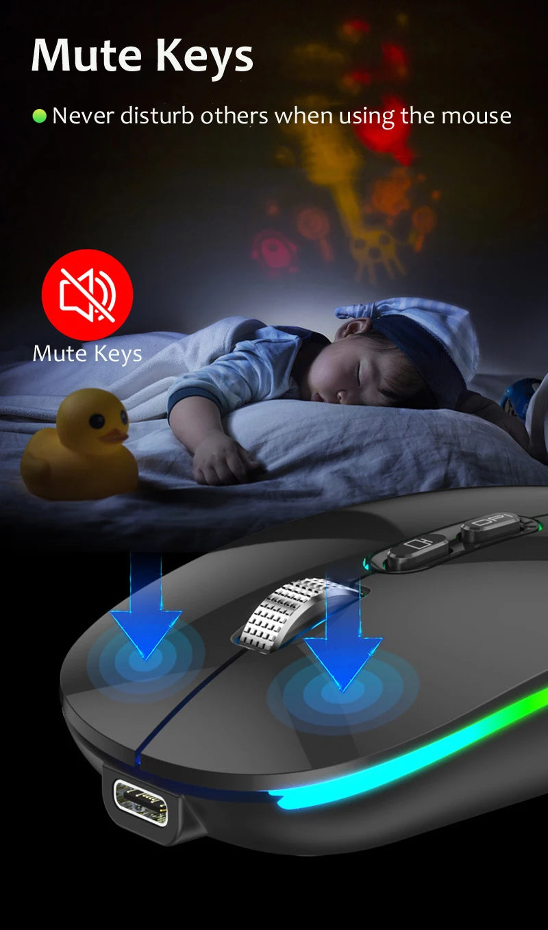 Dual Mode Bluetooth 2.4G Wireless Mouse One-Click Desktop Function Type-C Rechargeable Silent Backlight Mice for Laptop PC New