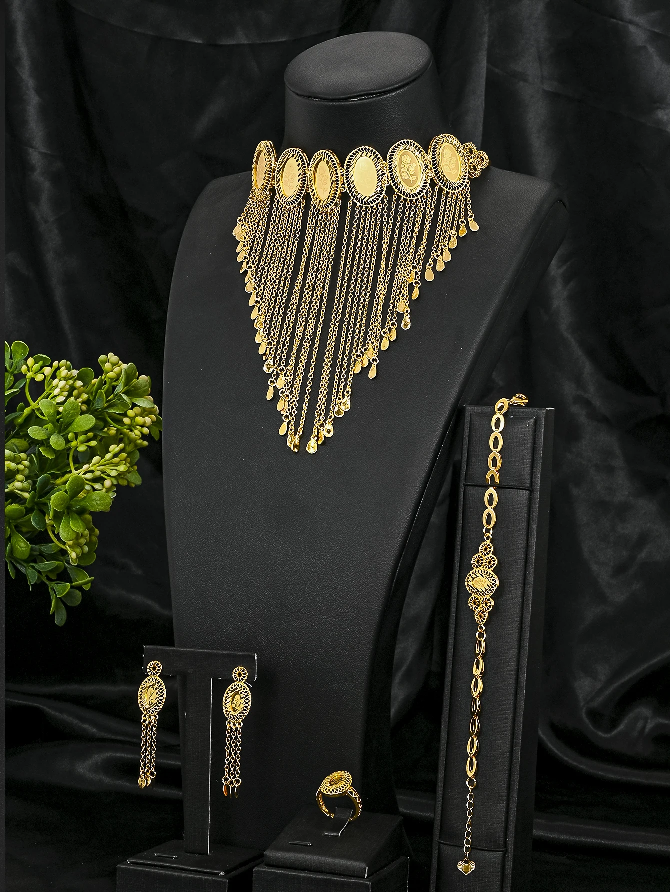 Dubai Fashion Wedding Jewelry Set for Women Round Necklace Tassels Bracelet Ring Earrings Sets African Bridal Gifts