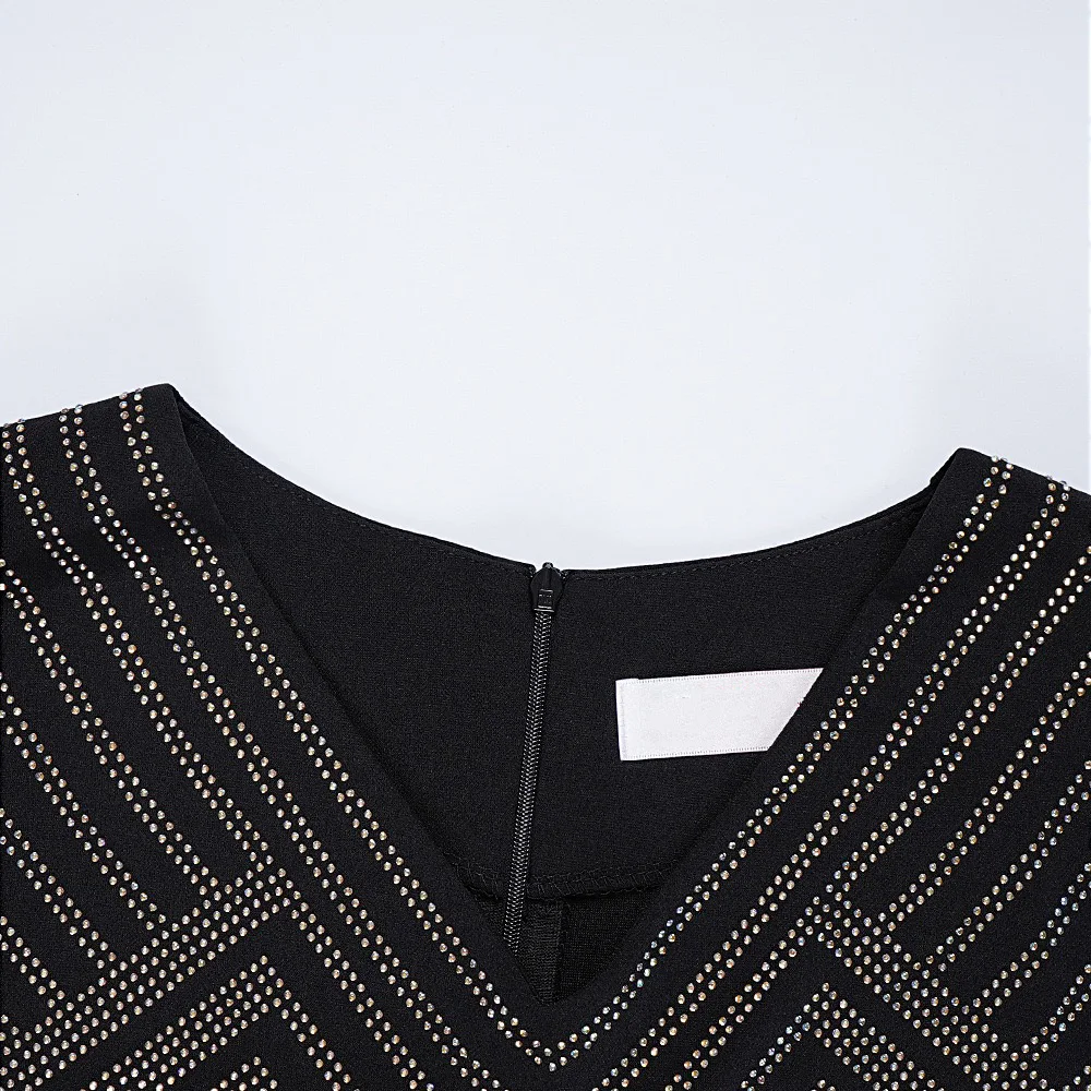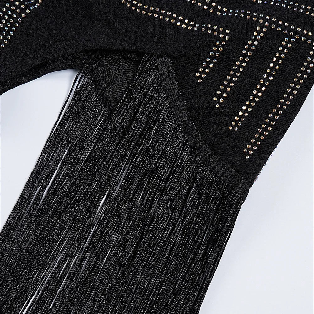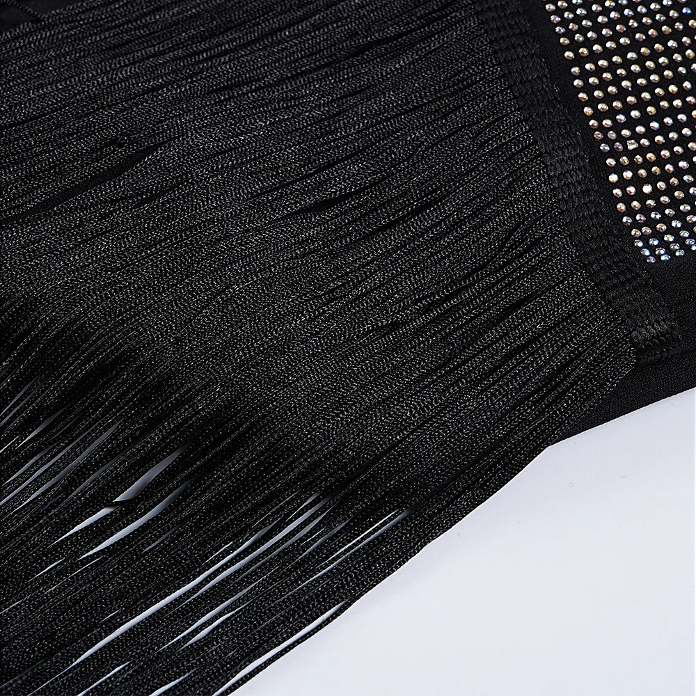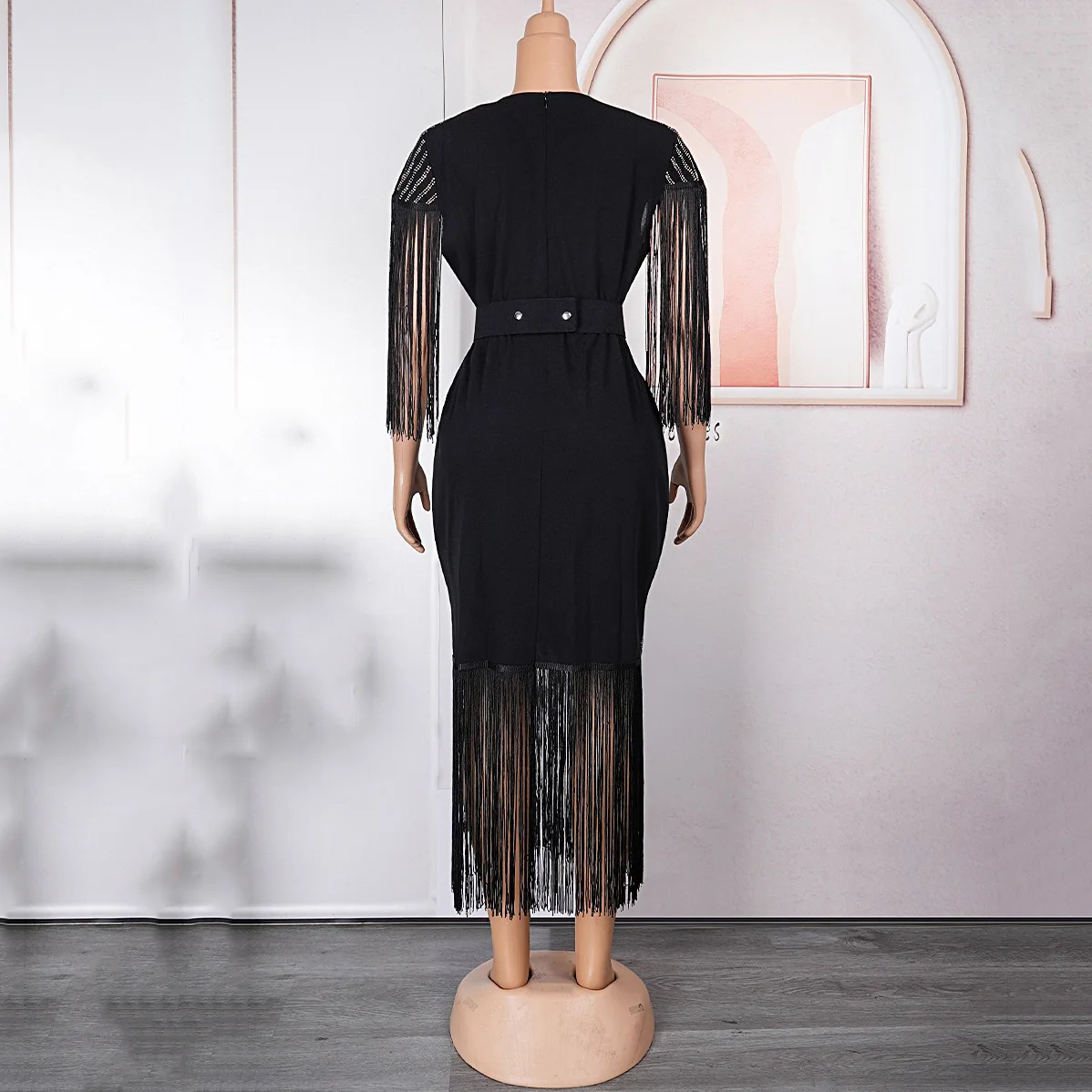 Elegant African Dresses New Trends Luxury Diamond Tassel V Neck Sheath Mid Calf Modest Female Business Work Wear Gowns Clothes