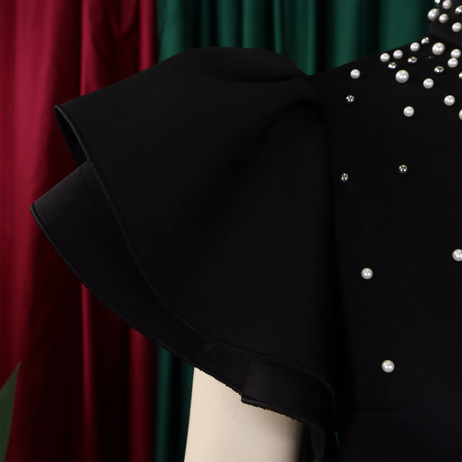 Elegant Dresses for Women O Neck Ruffles Sleeve Beaded Sheath Package Hips Mid Calf Luxury Birthday Party Dinner Vestidos Mujer