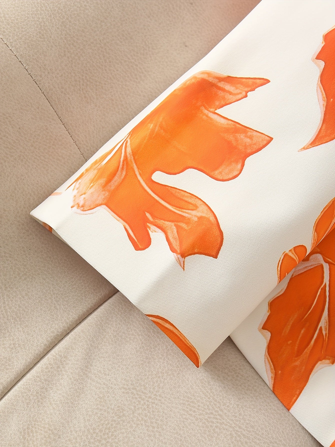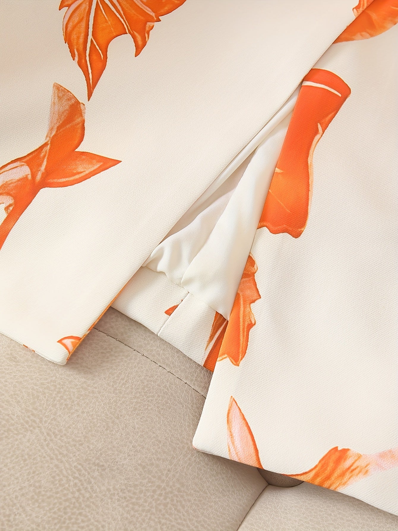 Elegant Women'S Blazer with Vibrant Orange Leaf Print - Single-Breasted Long Sleeve Jacket, Double Pockets, Smooth Polyester Fabric, All-Season Versatile Style, Ladies Blazers