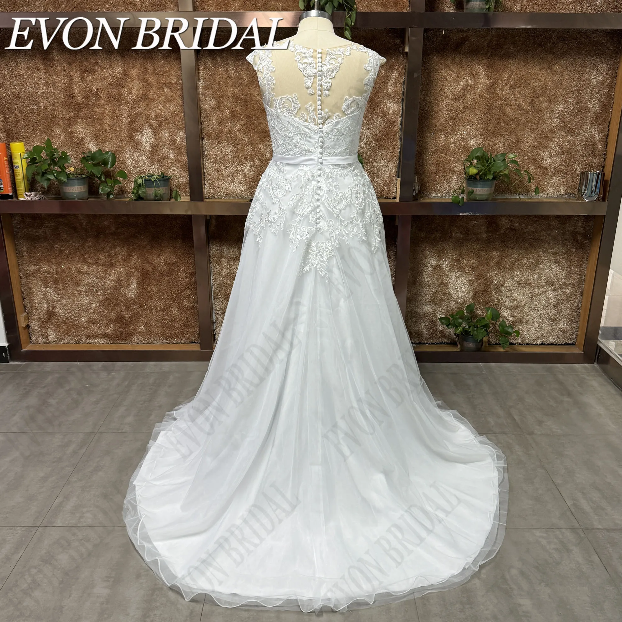 EVON BRIDAL Civil Wedding Dress Plus Size Woman Bride Cap Sleeves Bridal Gowns A-Line Applique Tulle Scoop vestidos novias boda
