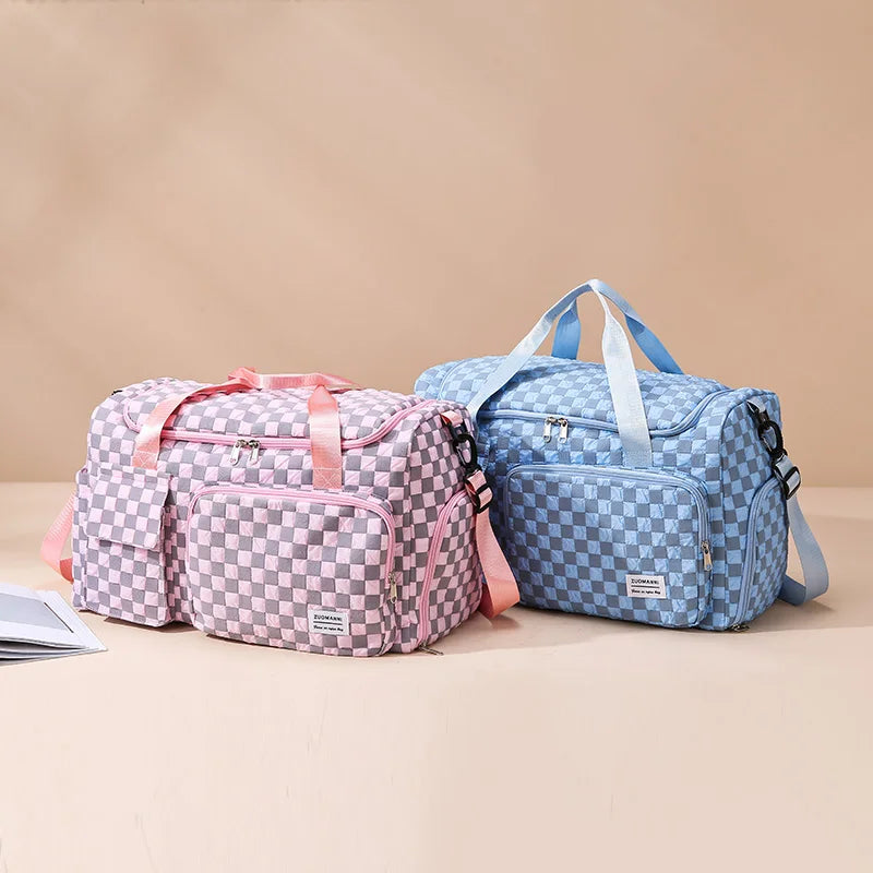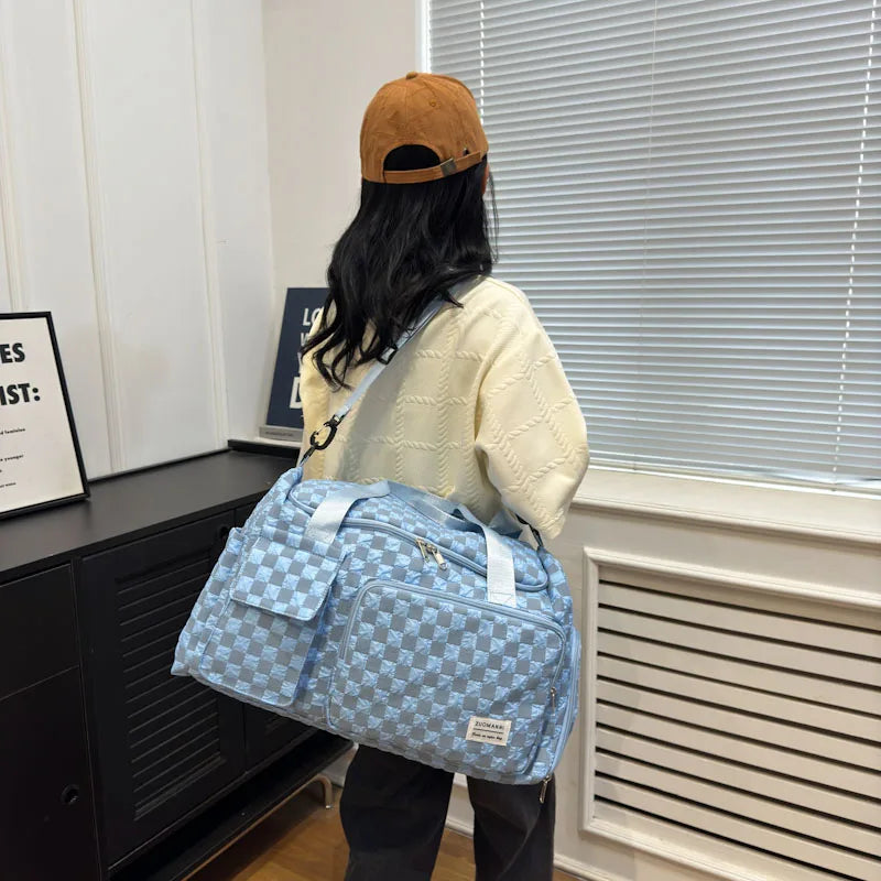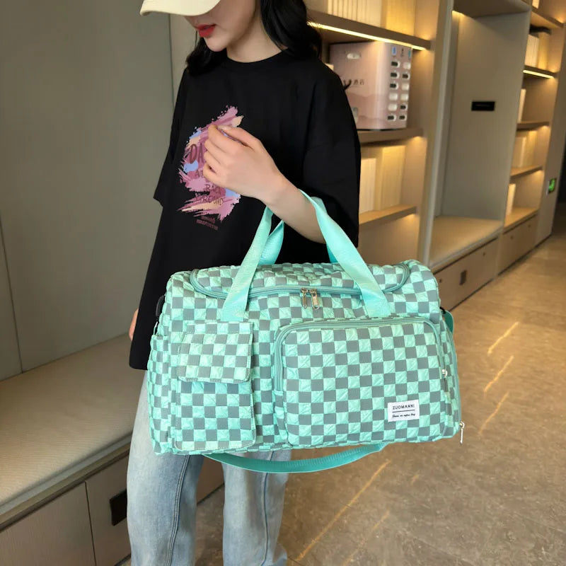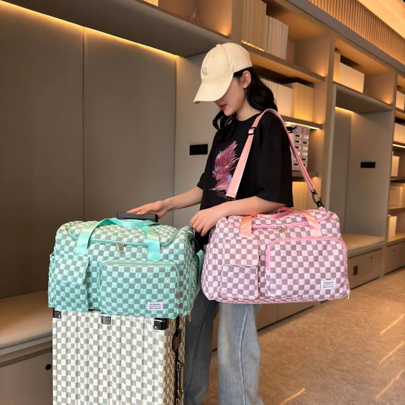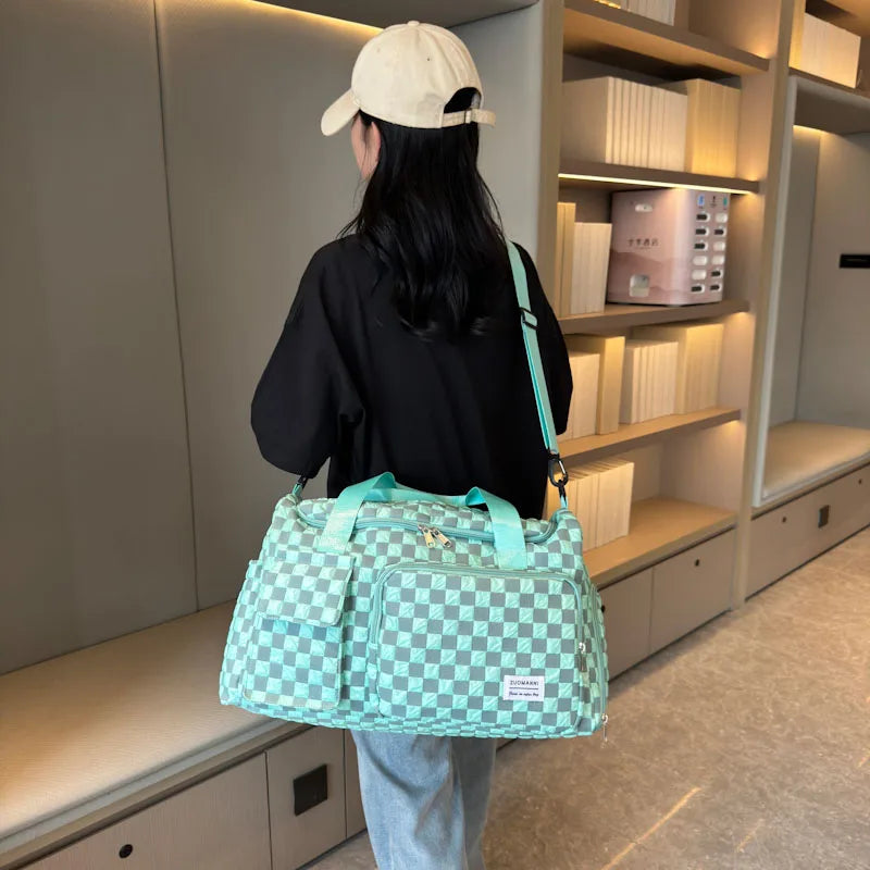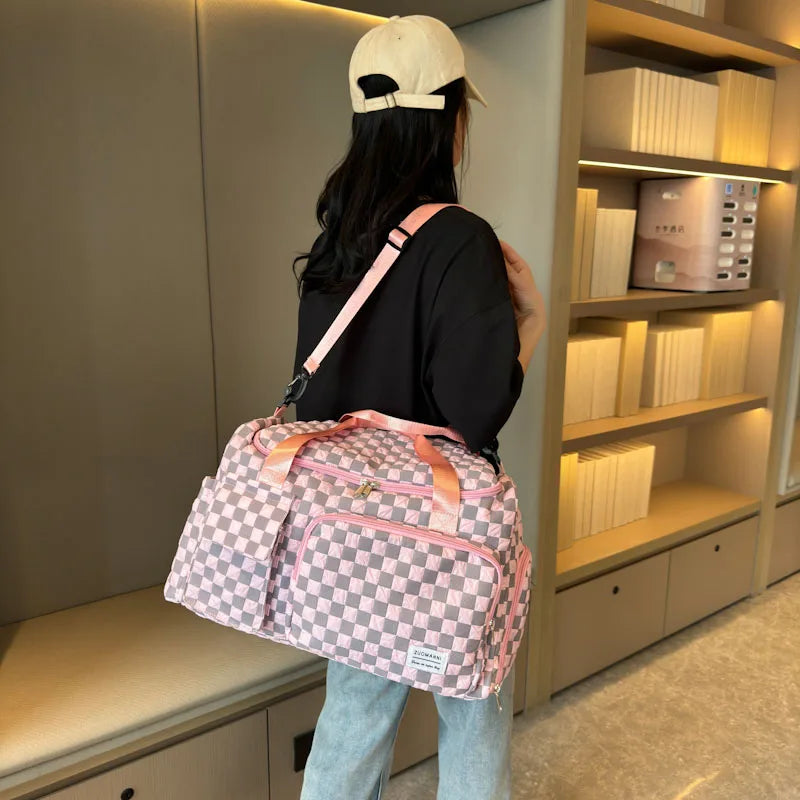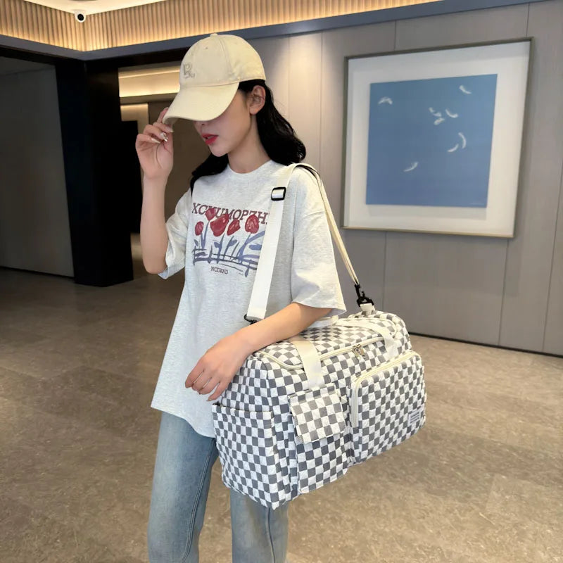 Fashion Large Capacity Checkerboard Pattern Duffle Handbag, Lightweight Travel Luggage Storage Bag, Portable Sports Fitness Bag