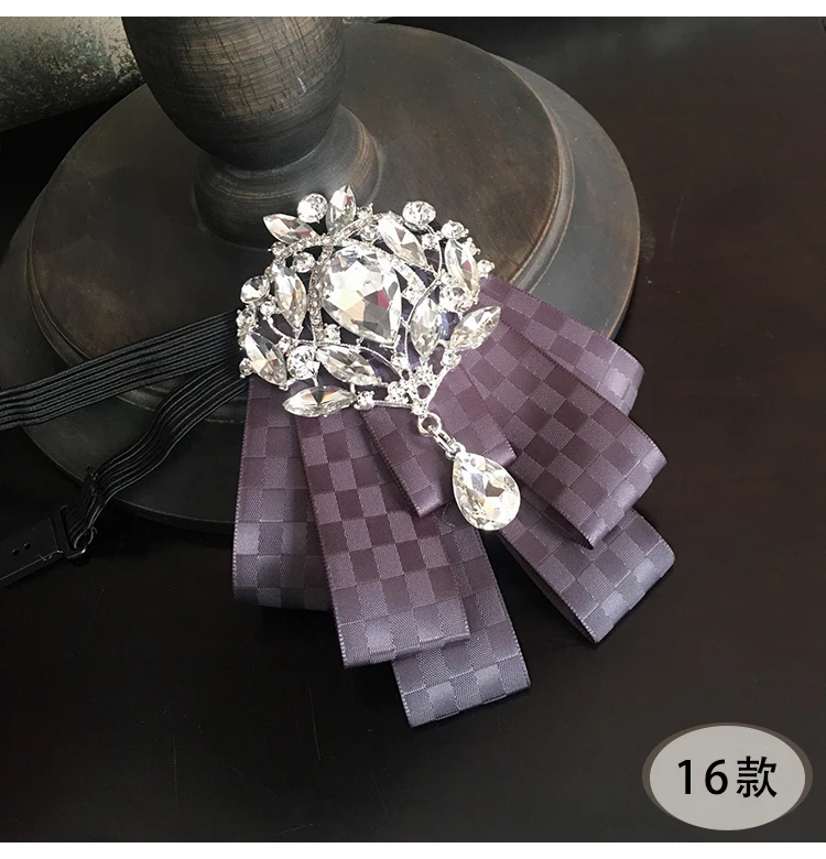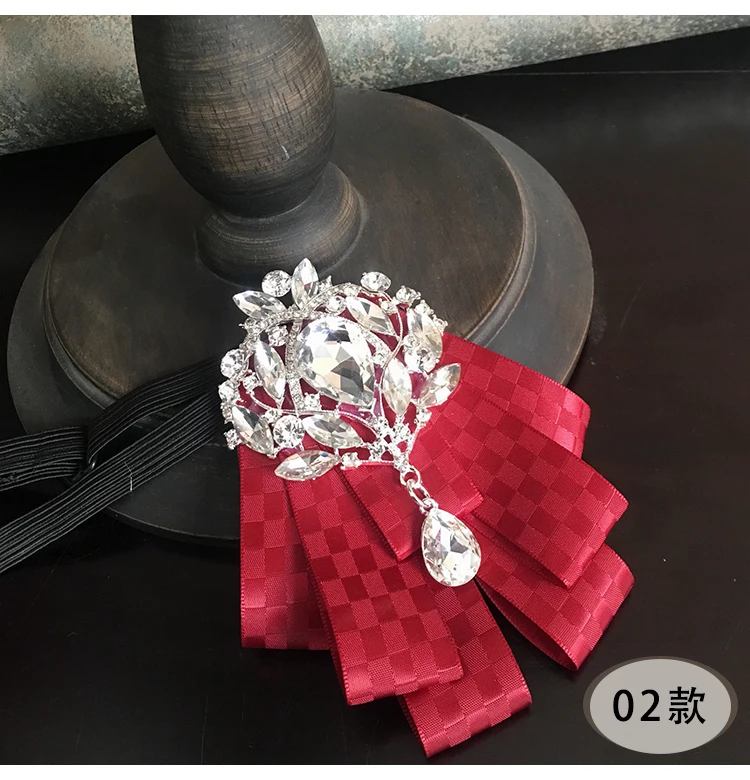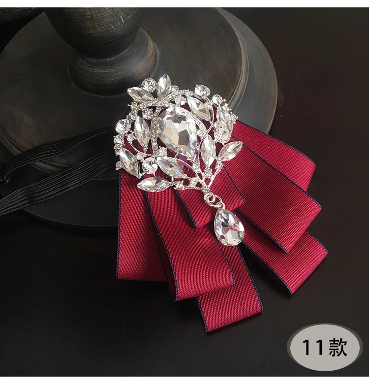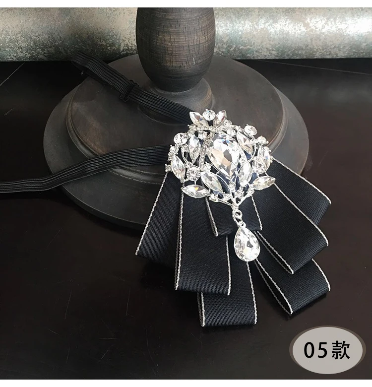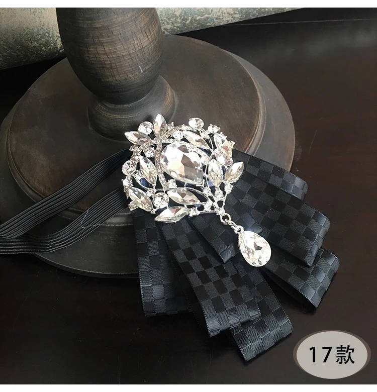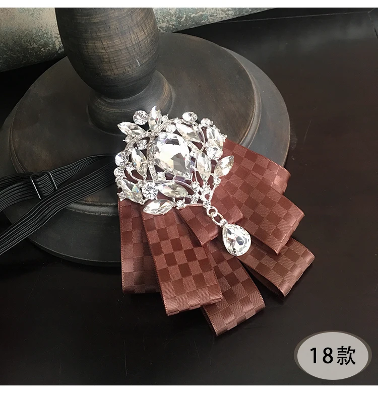 Hand-made Man New Retro Rhinestone Ribbon Bow Tie Diamond Brooch Women's Shirt Collar Solid Business Office Pattern Neckties
