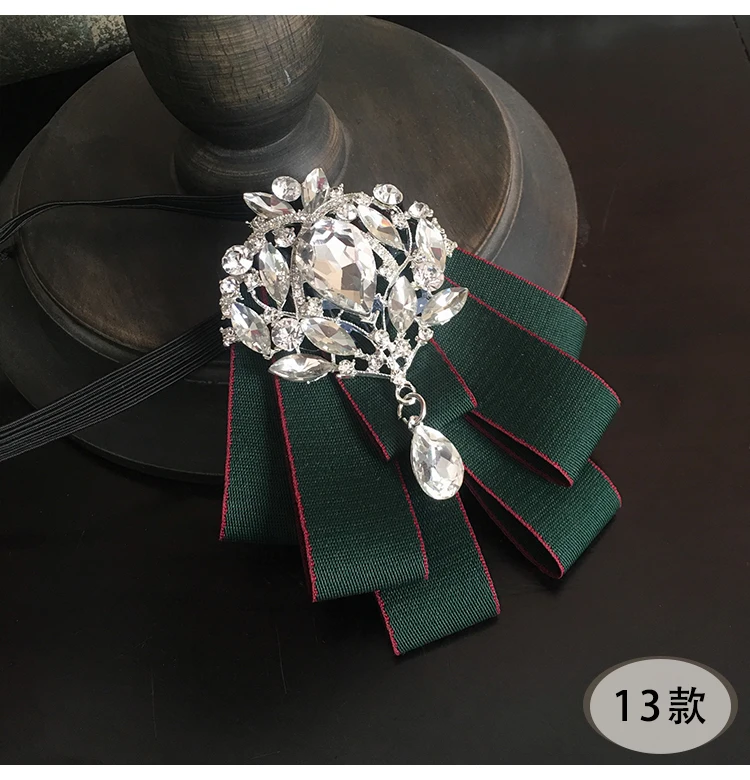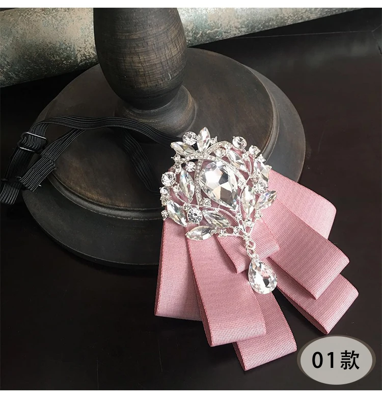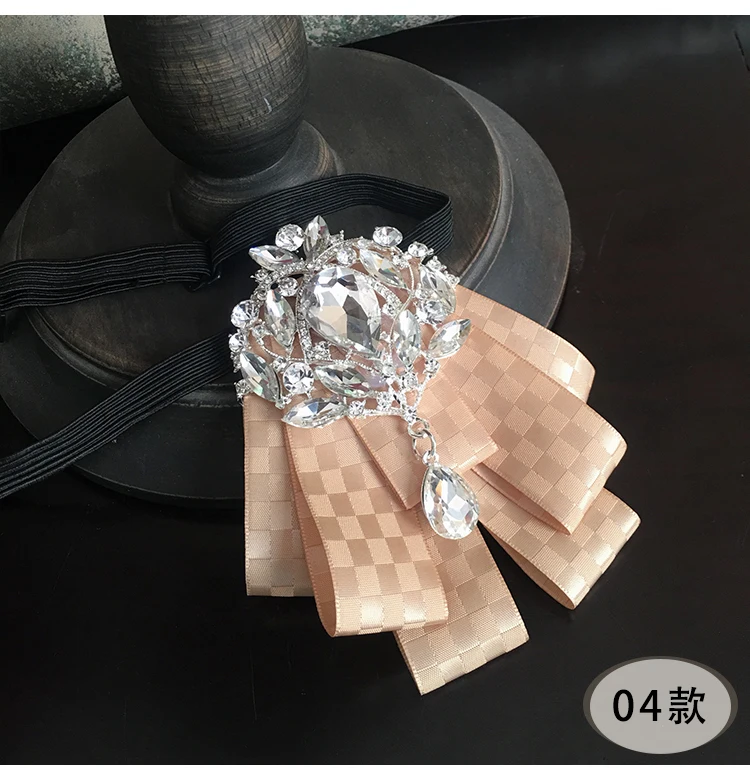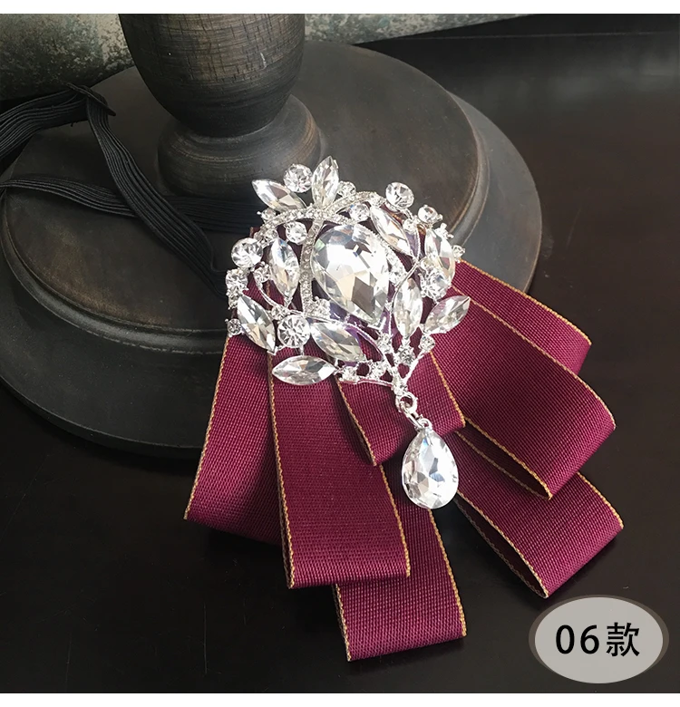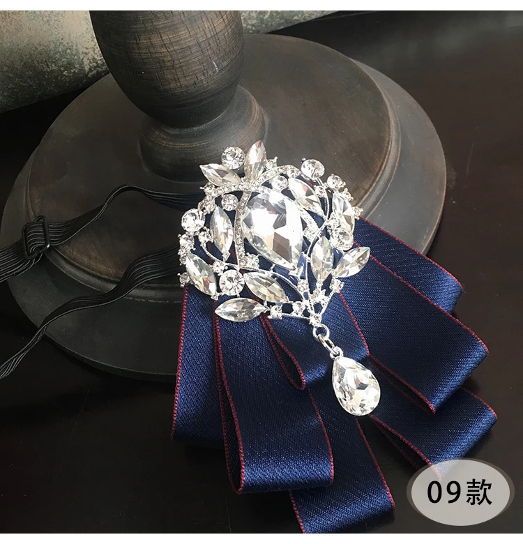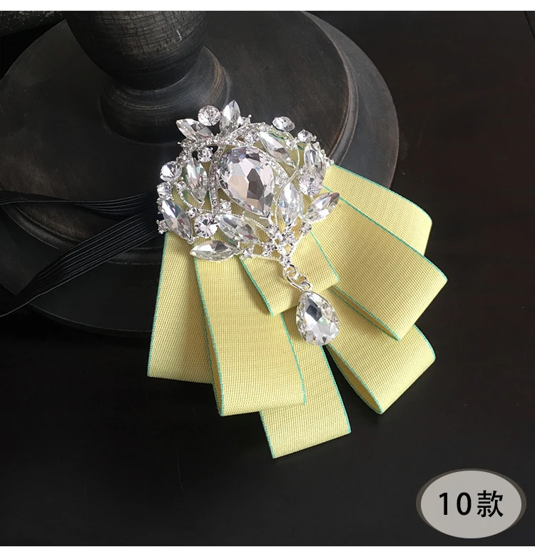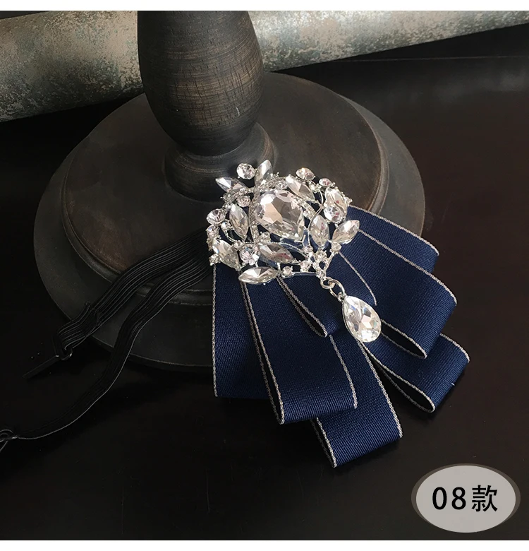 Hand-made Man New Retro Rhinestone Ribbon Bow Tie Diamond Brooch Women's Shirt Collar Solid Business Office Pattern Neckties