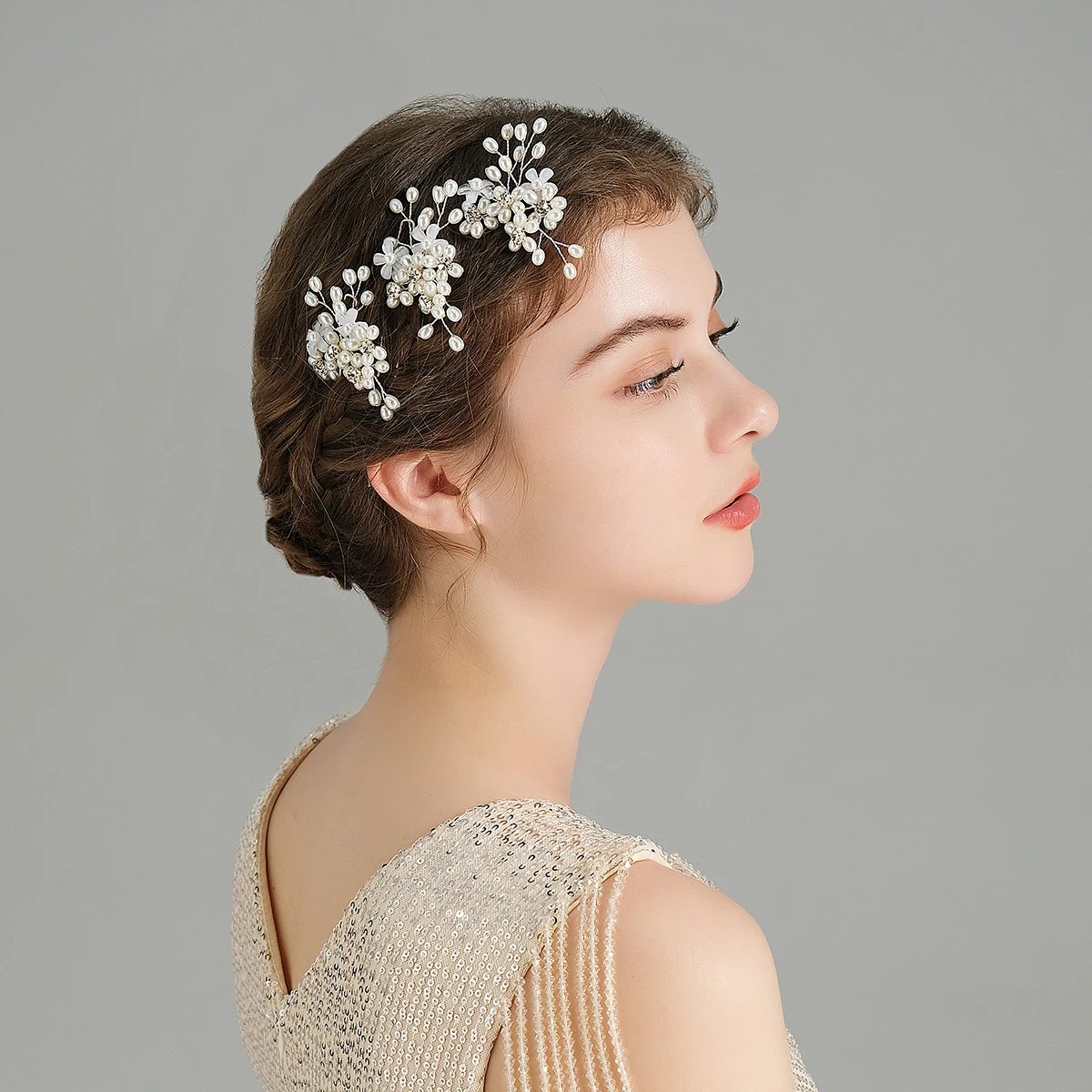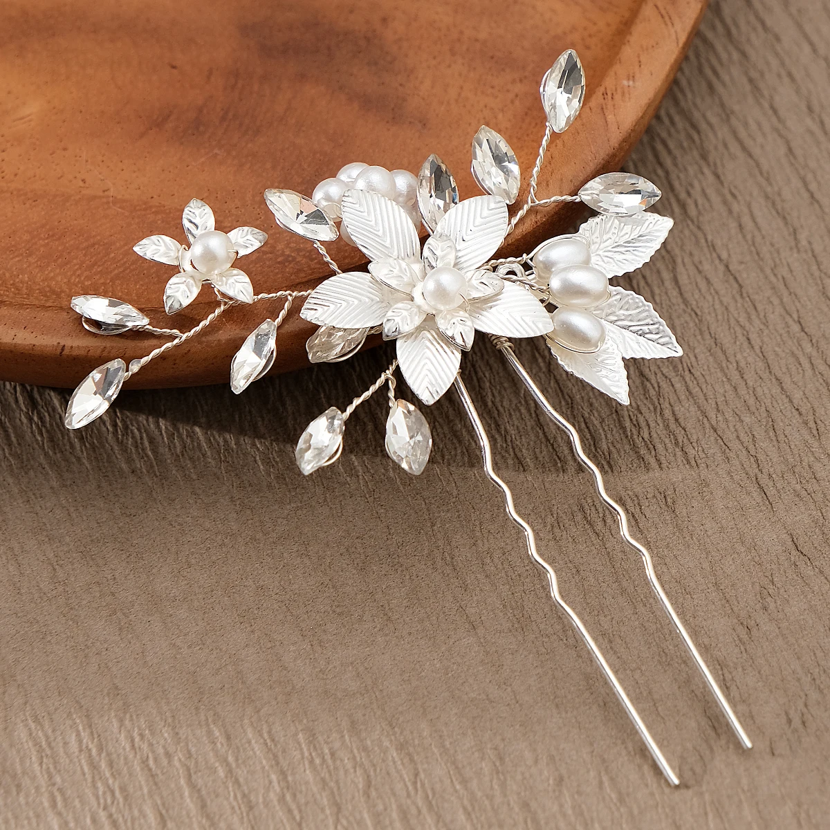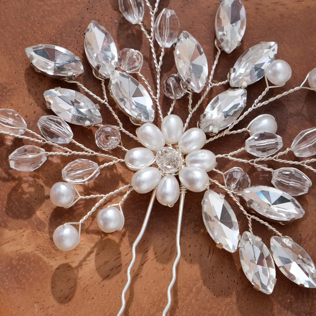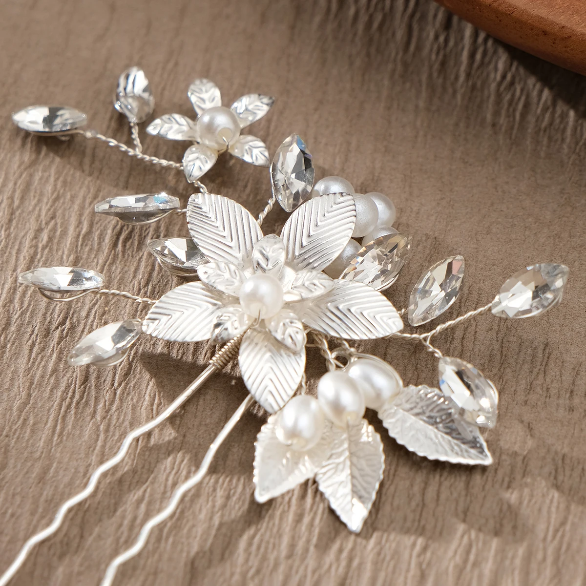 Fashion Pearl Rhinestone Flower Hair Pins barrette Bride Wedding Jewelry Accessories Hair Clips Headpiece For Women