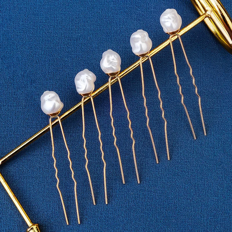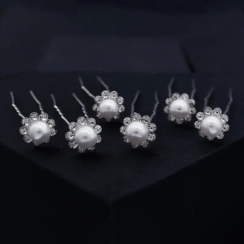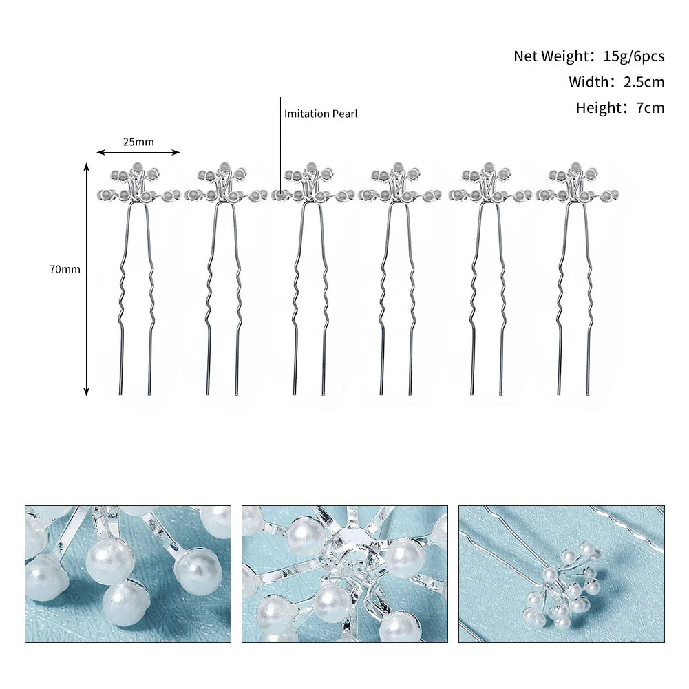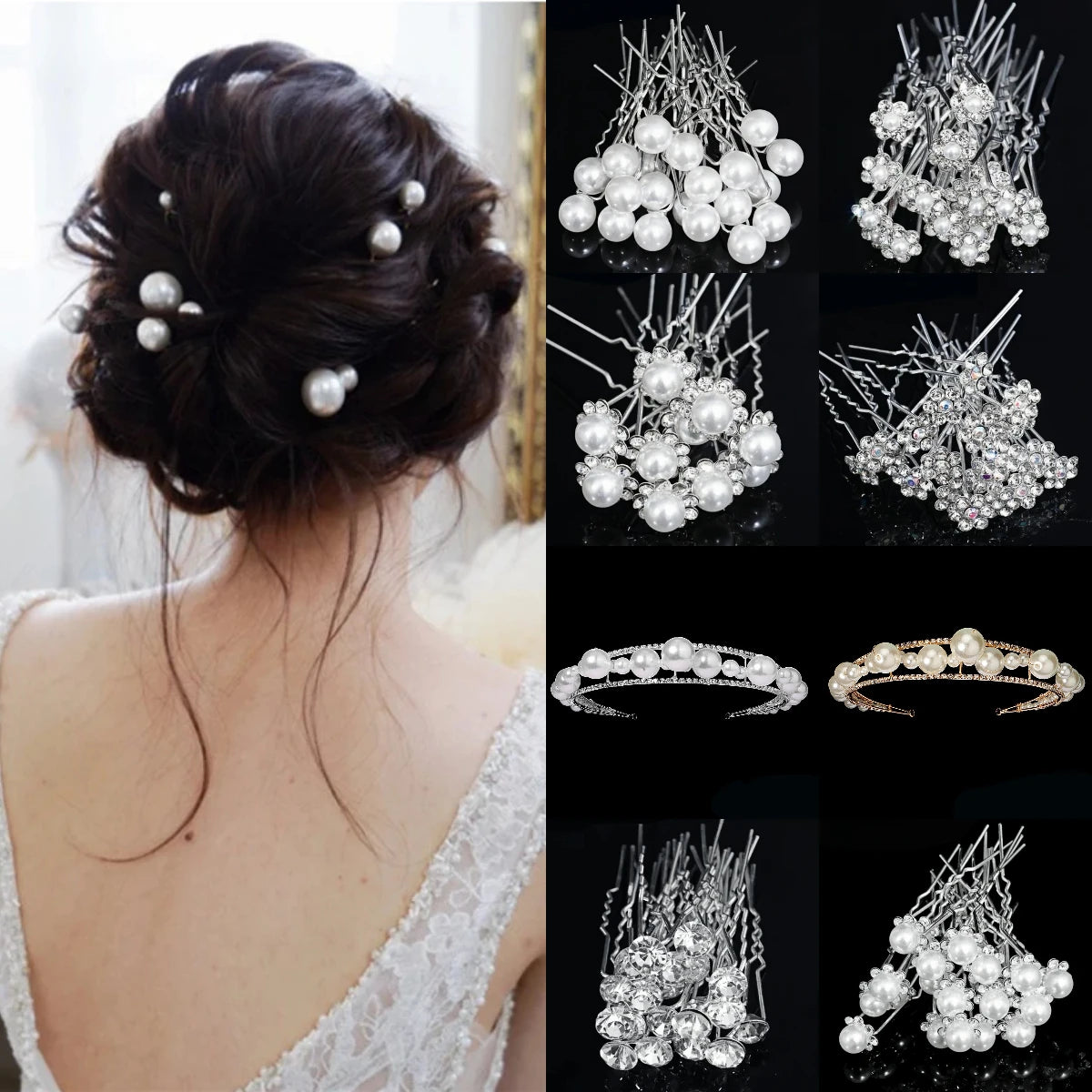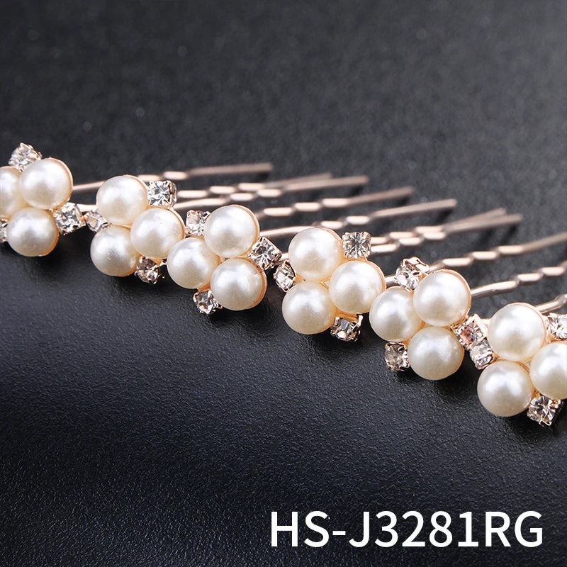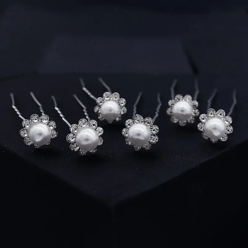 Fashion U-shaped Pin Metal Barrette Clip Pearl Hairpins For Bride Flower Clear Crystal Tiara Wedding Jewelry Hair Accessories