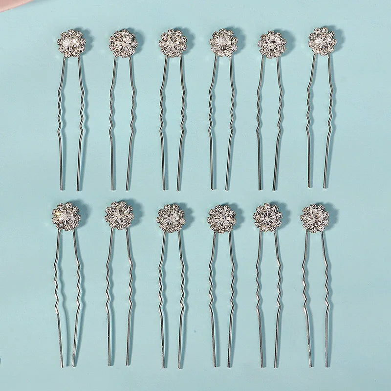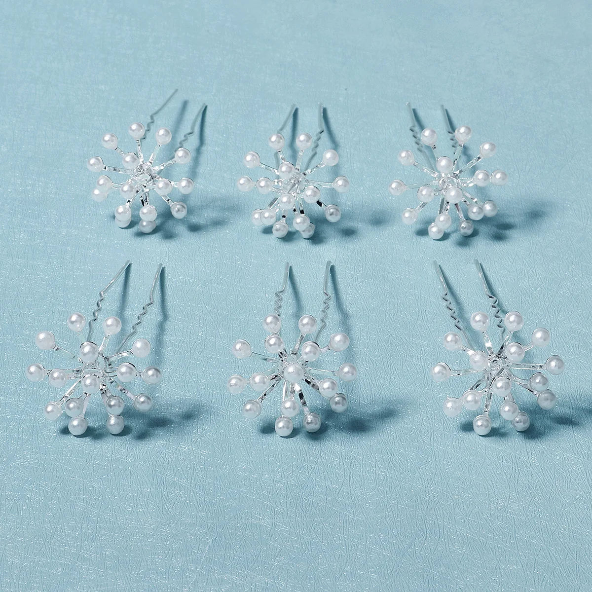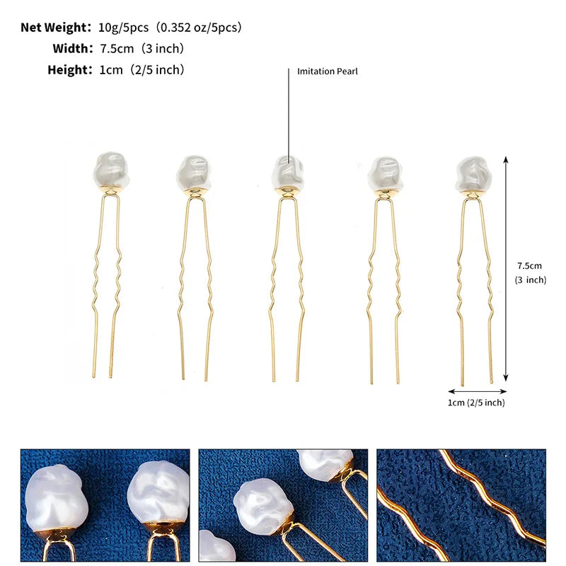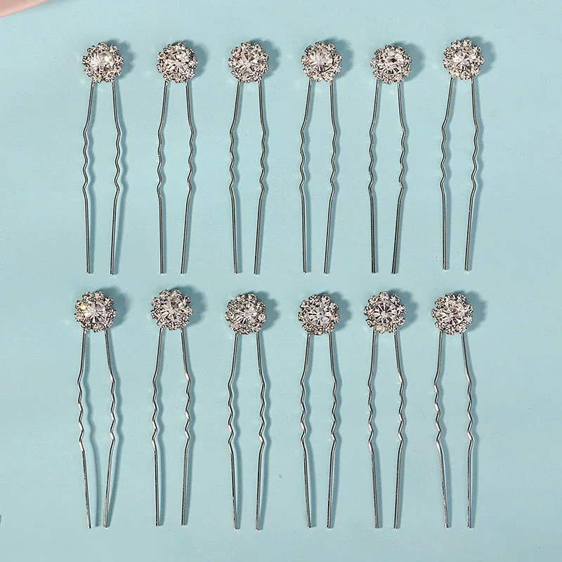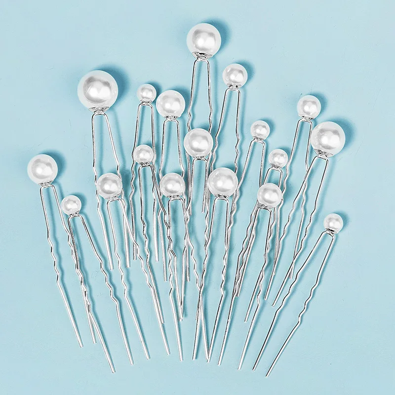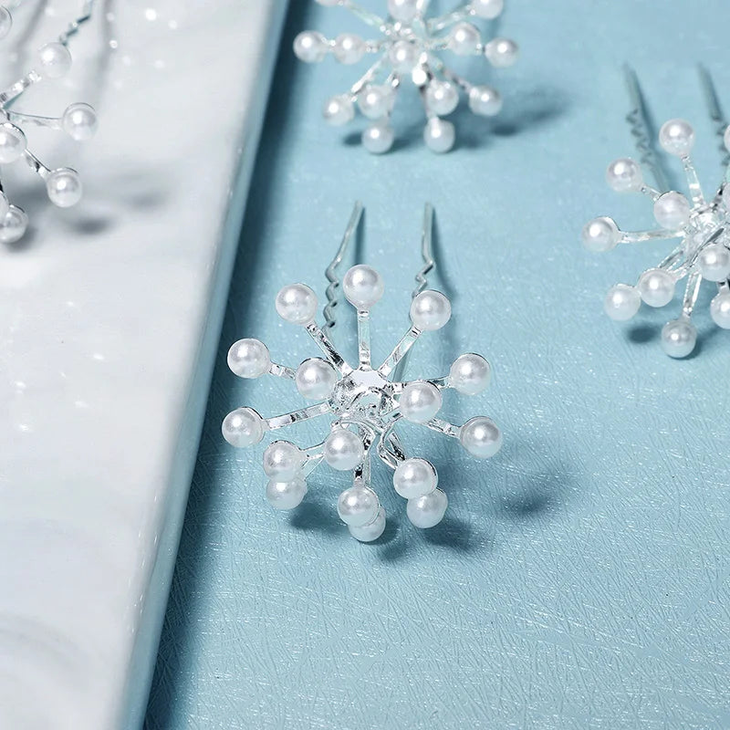Fashion U-shaped Pin Metal Barrette Clip Pearl Hairpins For Bride Flower Clear Crystal Tiara Wedding Jewelry Hair Accessories