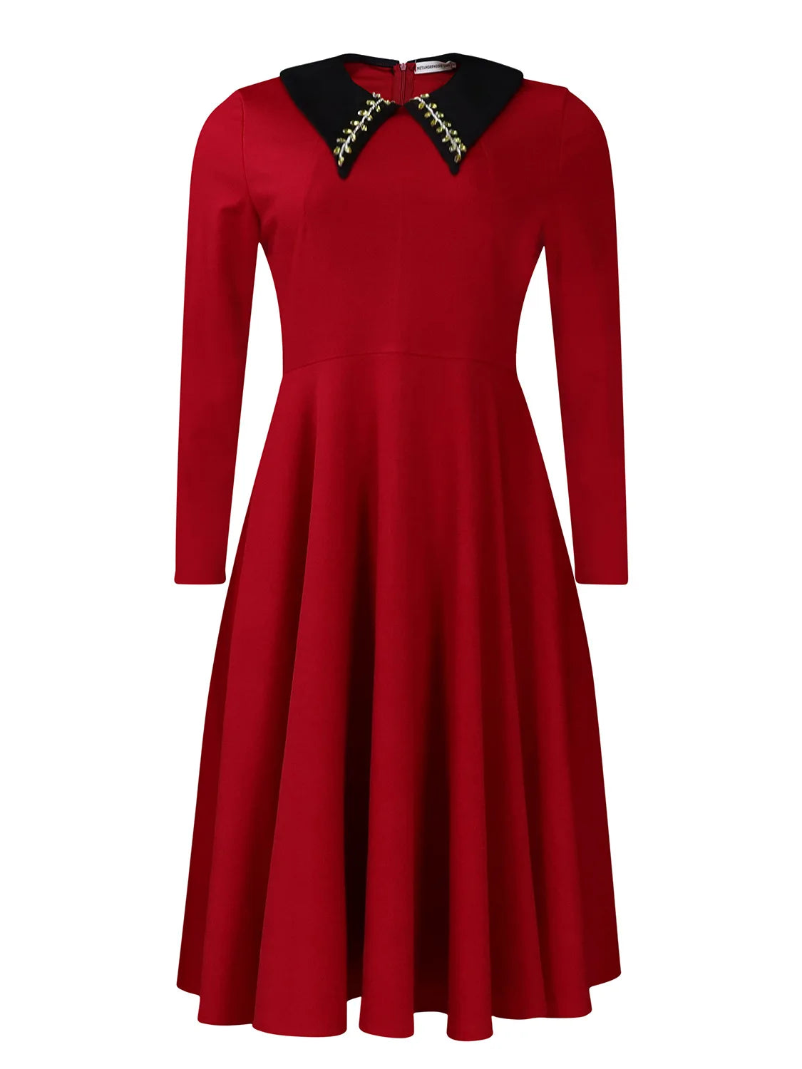 Fashionable Solid Color Women's Long-sleeved Lapel Elegant Slim and Large Sport African Dress