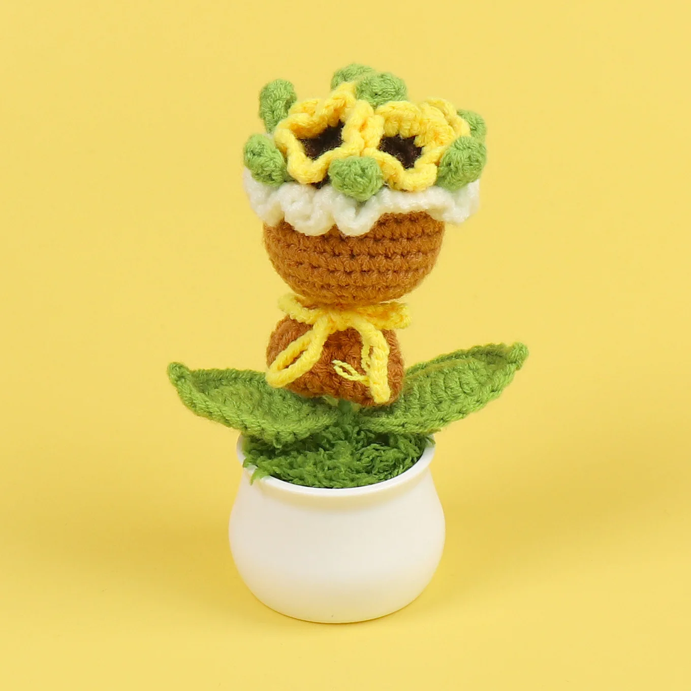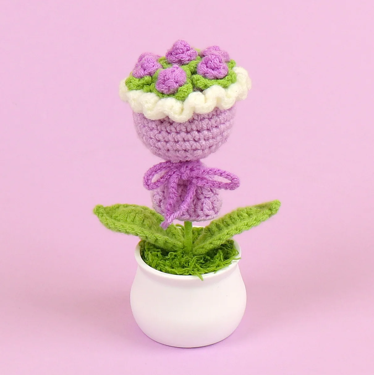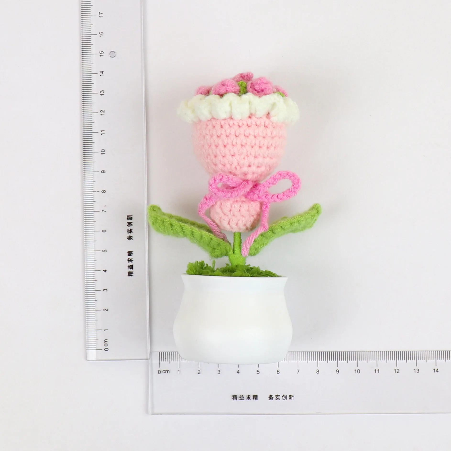 Finished Handmade Crocheted Rose Bridal Bouquet Potted Car Decoration Simulation Wool Flowers Office Decoration Creative