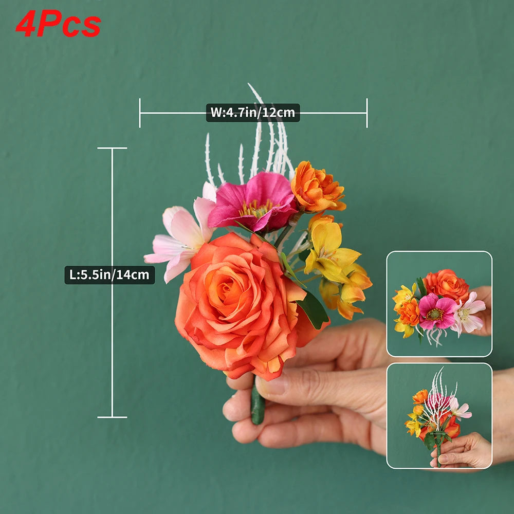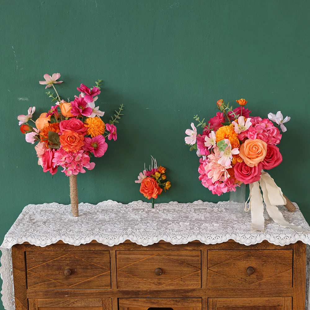 Flowers Artificial Decoration Orange Pink Series Rose Greens Floral Arrangement Bridal Bouquet for Wedding Event Decor J2601