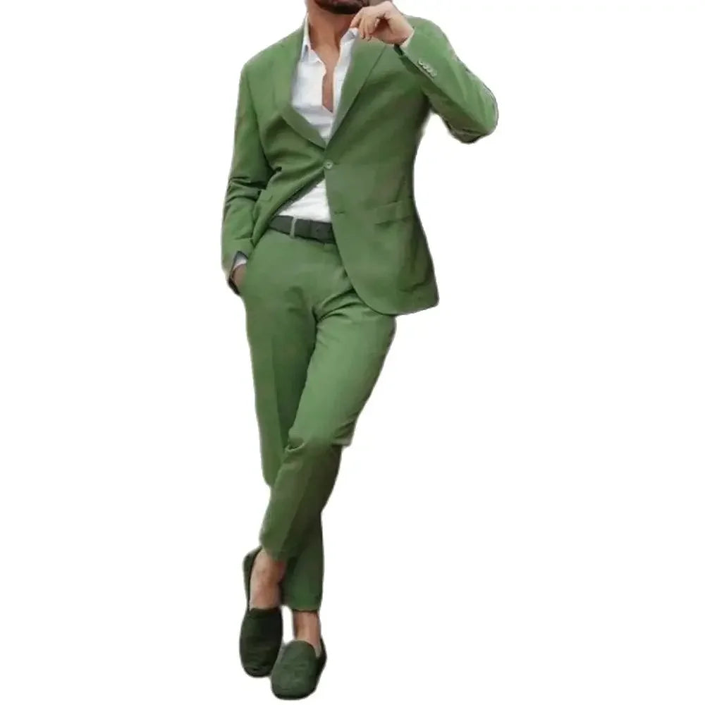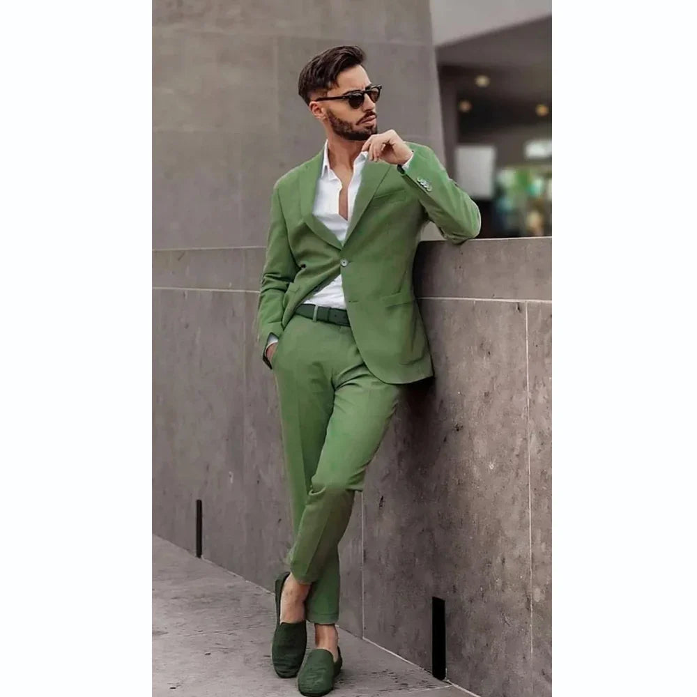 Formal Suit for Men Green Slim Fit Costume Homme Single Breasted Peak Lapel Skinny 2 Pieces Jacket Pants Male Party Clothing