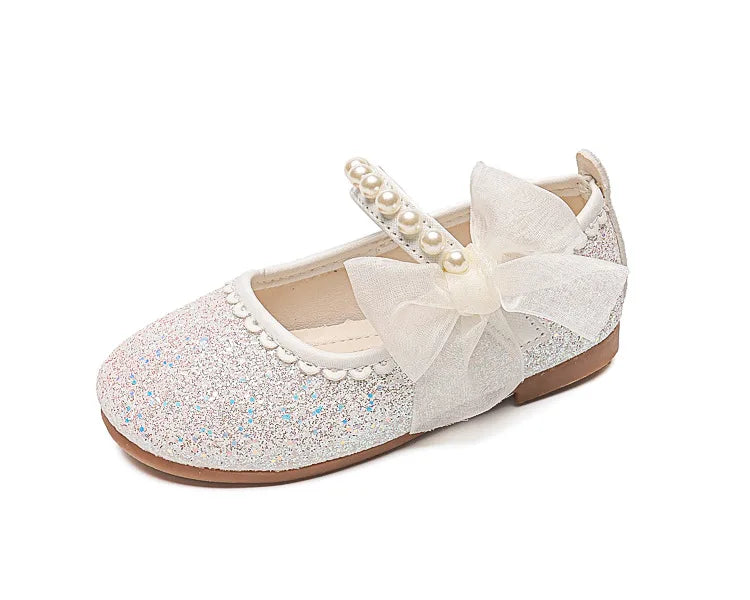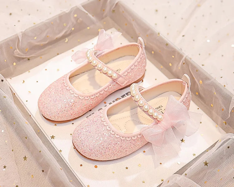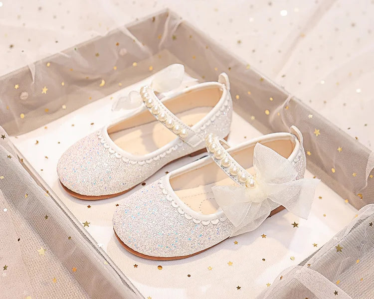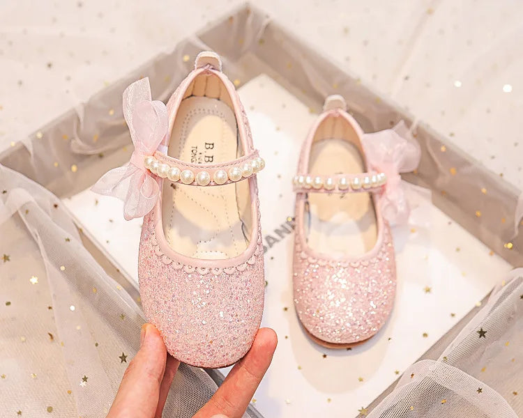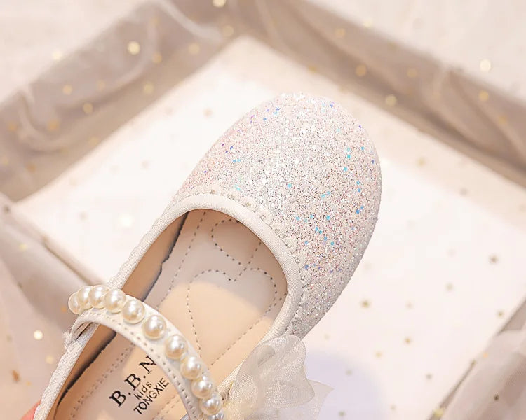 Girls Oxfords Bling Shoes Spring Autumn Kids School Dancing Shoes Pearl Beadings Big Girls Soft PU Leather Shoes Pink, Beige
