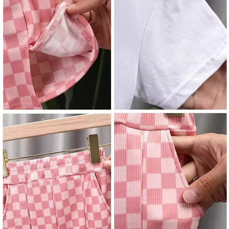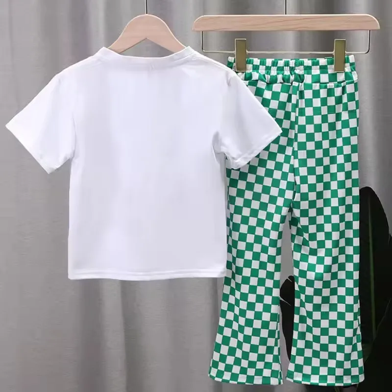Girl's Sports Suit Summer Children Short-sleeved Sets 2025 New Kids T-shirt+Flare Pants 2Pcs Outfits 2-10Y Girl Cartoon Clothing