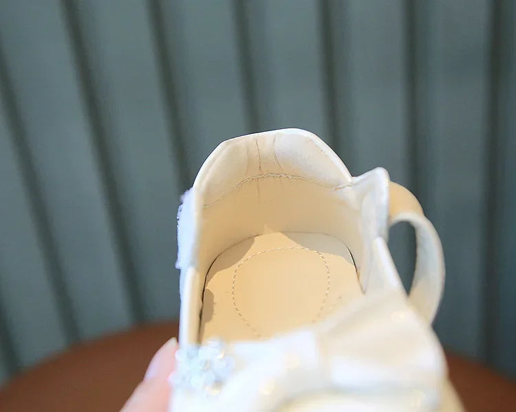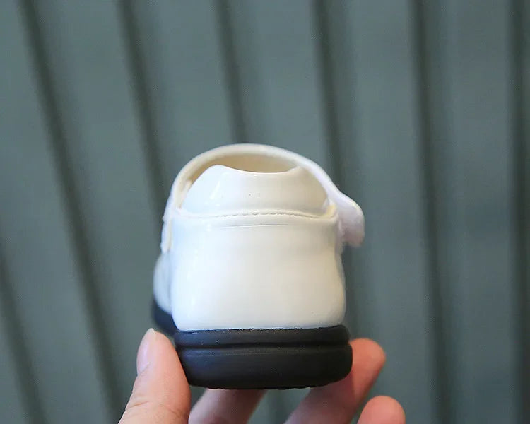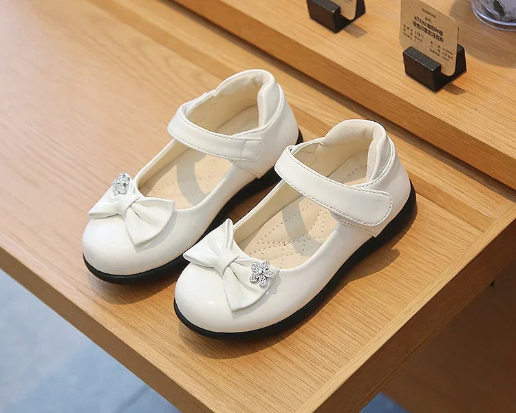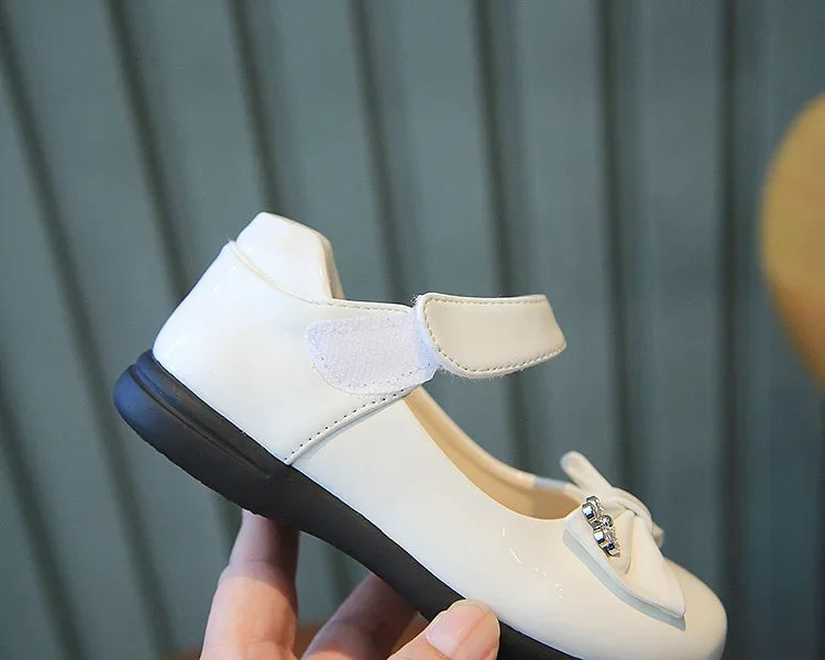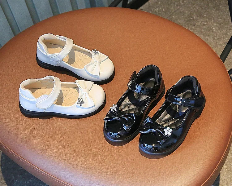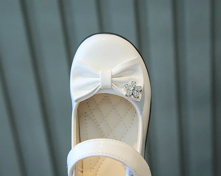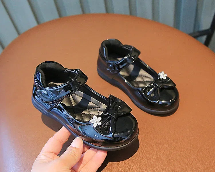 Glossy Kids Leather Shoes Simple Shallow Performance Shoes Black Bow with Crystal Flower Child Moccasin Shoes for Girls Casual