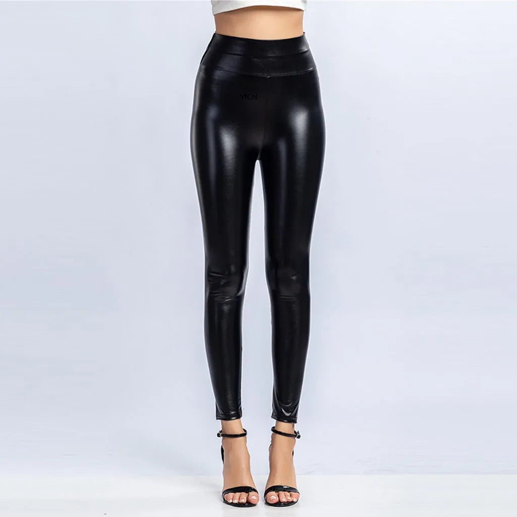 Glossy PU Leather Pants Women's Slim High Waist Bottom Lift Trouser Elastic Leggings Nightclub Party Wear Ladies Pencil Tights