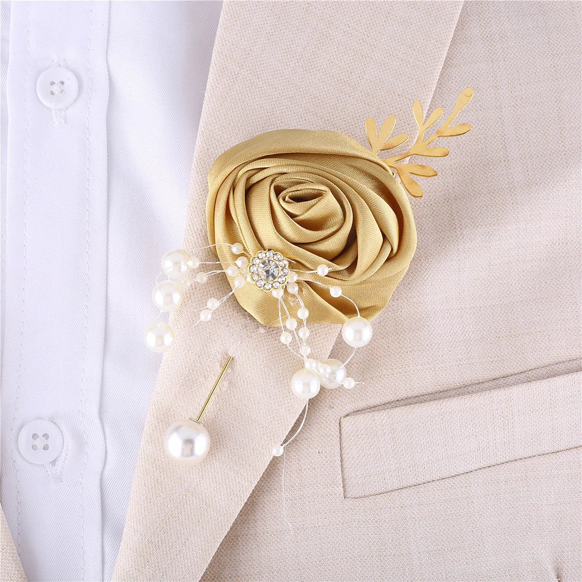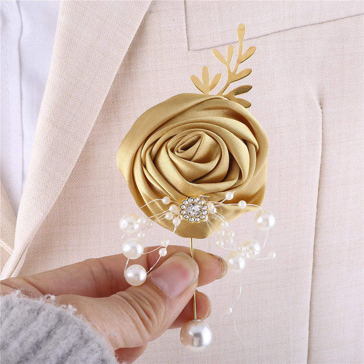 Gold Artifical Rose Flowers Bridesmaid Marriage Groomsman Boutonniere for Wedding Accessories