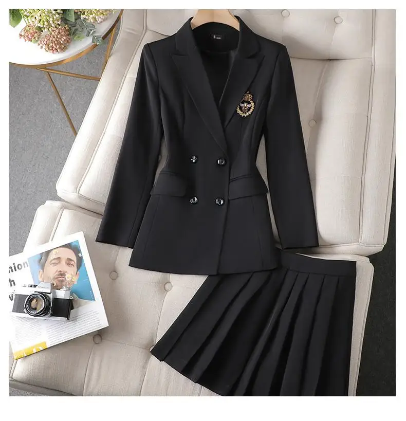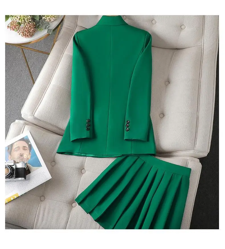 Green Suit Set 2025 New Spring Autumn Long sleeved Suit Jacket Top+Skirt Fashion Slim Temperament Two-piece Clothing Sets
