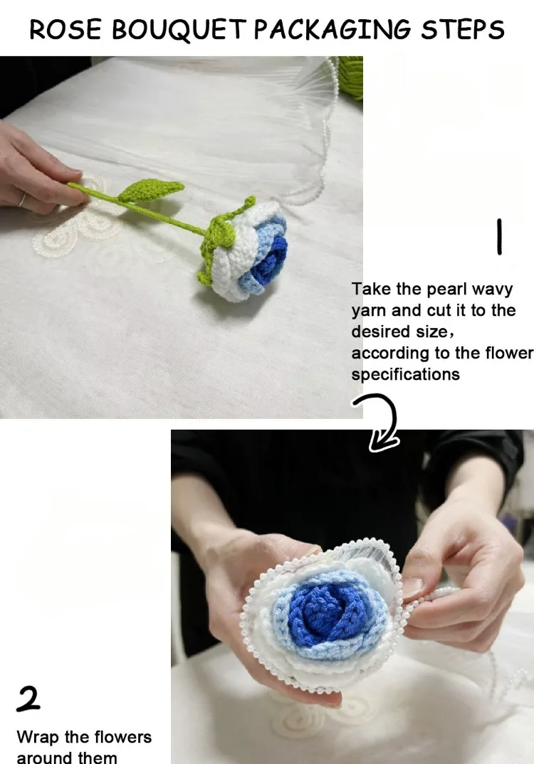 Handmade Knitted Crochet Artificial Rose Bouquet DIY Material Pack Wedding Decoration Bride Holding Flowers Valentine's Day Gift