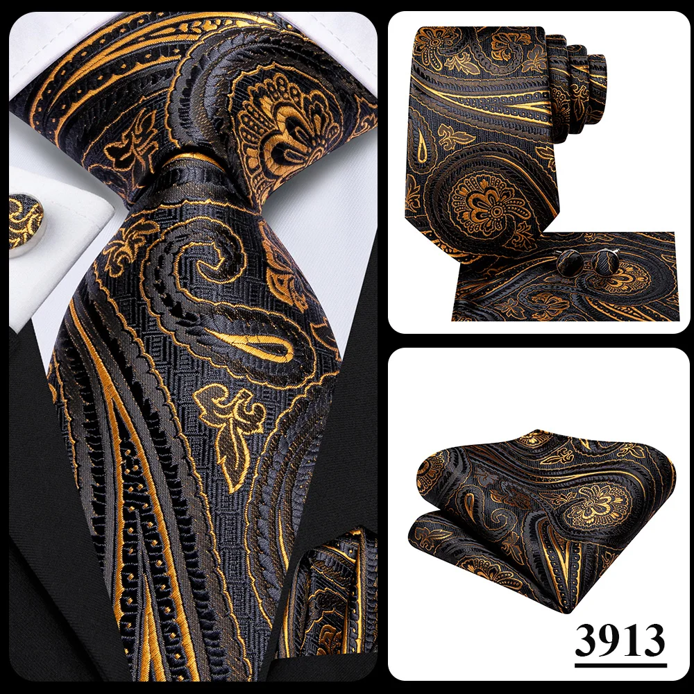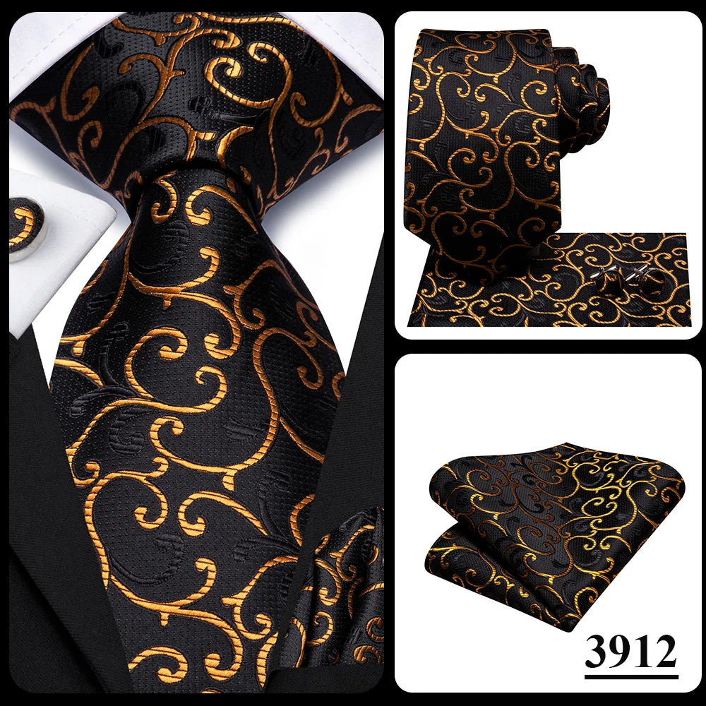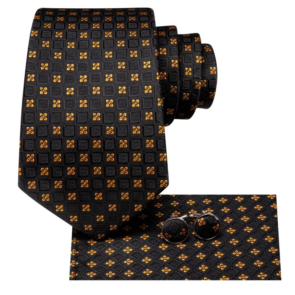 Hi-Tie Psialey Black Gold Silk Elegant Tie For Men Groom Wedding Men Necktie Pocket Square Cufflink Accessory Wholesale Designer
