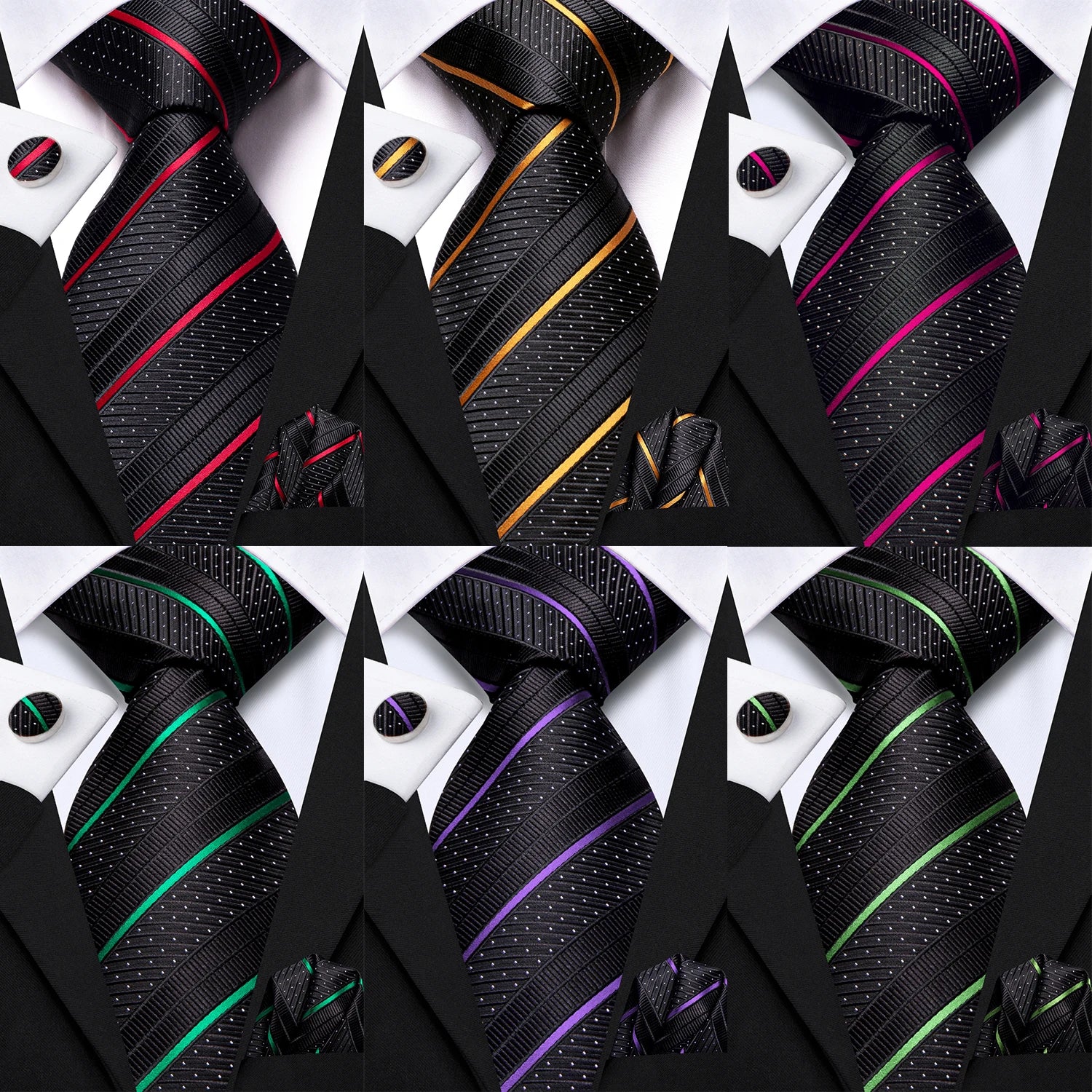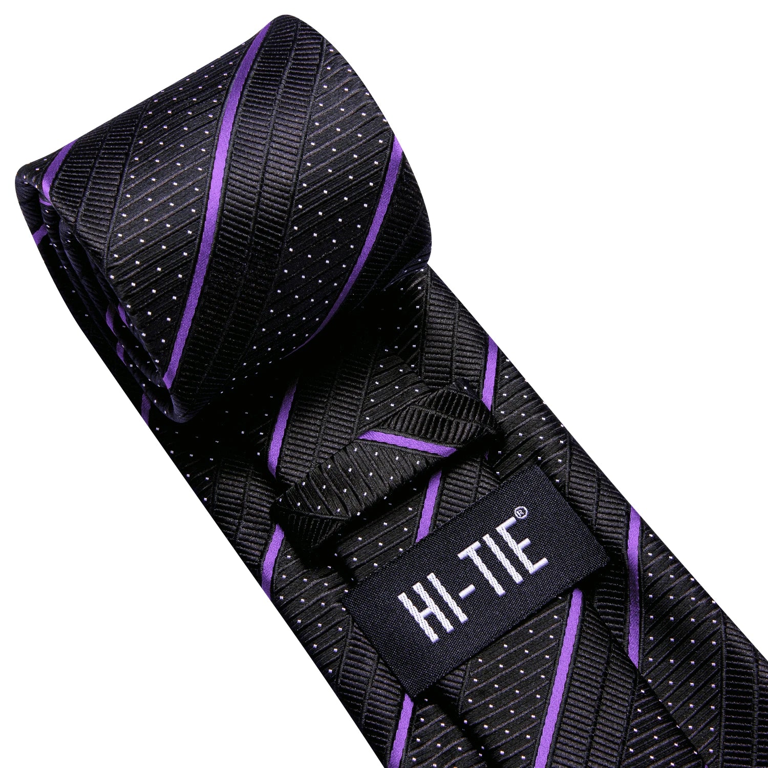 Hi-Tie Striped Black Purple Red Green Men Elegant Necktie Hanky Cufflinks for Tuxedo Fashion Classic Silk Luxury Tie for Man