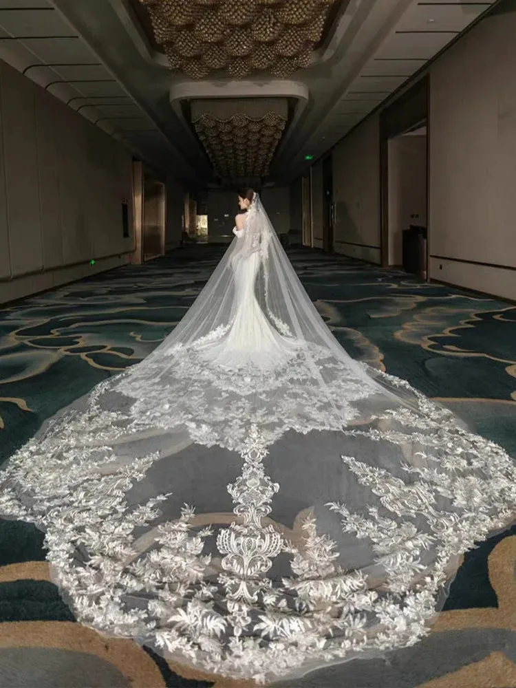 High Quality Vintage Wedding Veil 4M Long Bridal Veils with Comb Lace Edge Veil Velos De Novia wedding Accessories