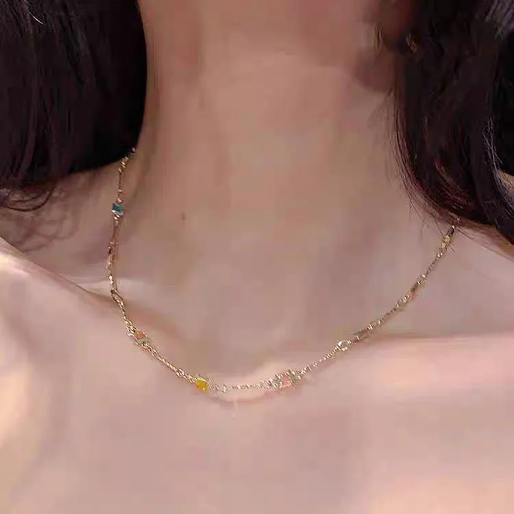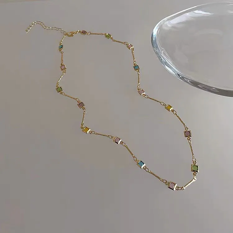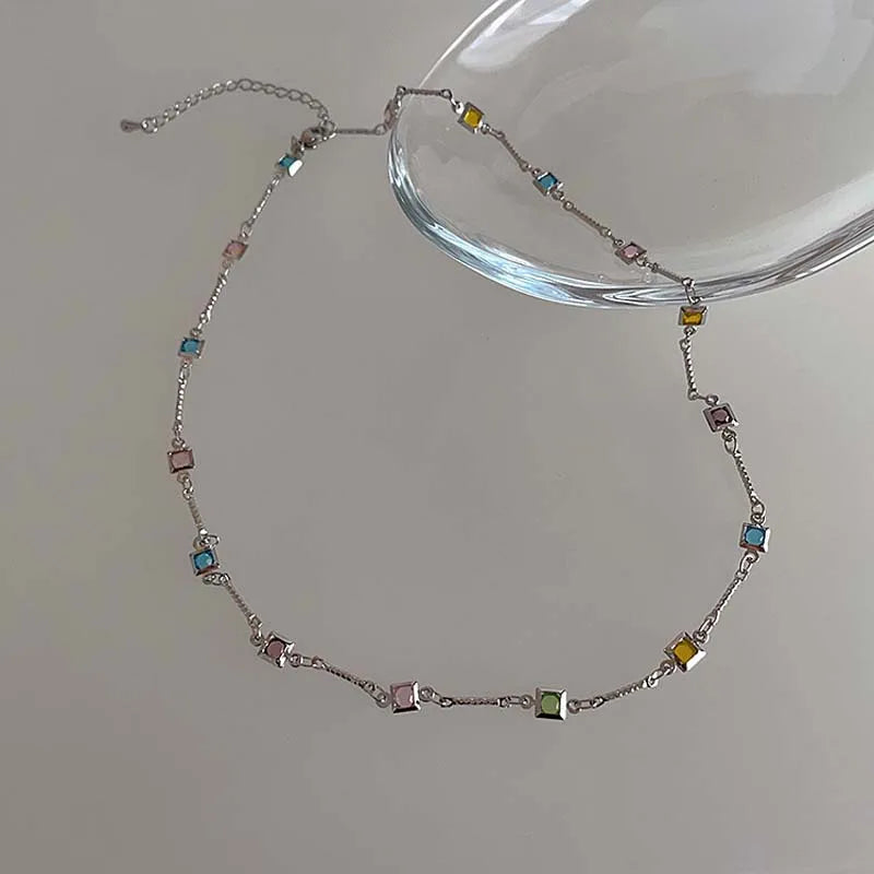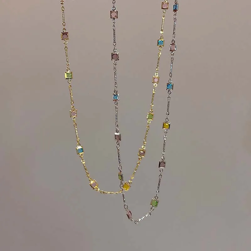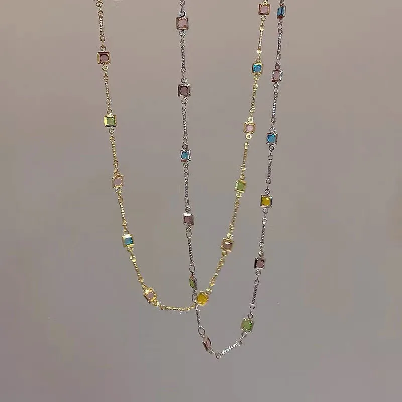 Hot Sale Colorful Square Rhinestone Necklace Fashion Exquisite Light Luxury Zircon Clavicle Chain Female Wedding Jewelry Gifts