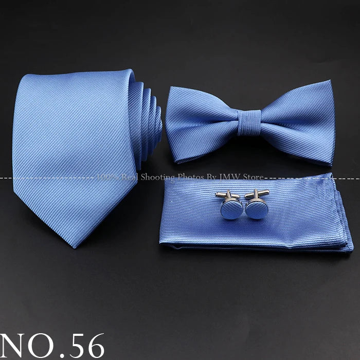 Hot Sale Red Blue Tie Set Polyester Slim Striped Necktie Bowtie Cufflink Brooch For Groom Suit Wedding Cravat Shirt Accessory