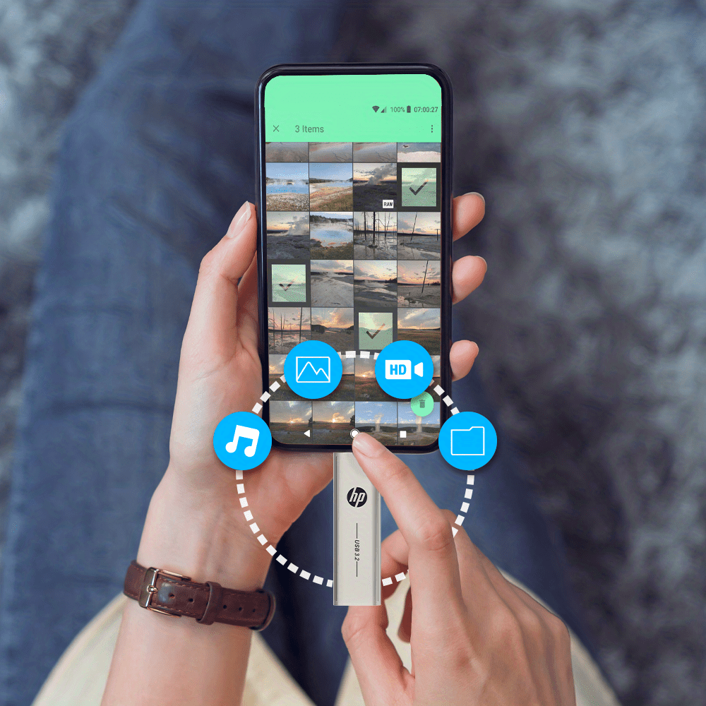 HP USB Type C Flash Drive Available in 64GB, 128GB, And 256GB - Fast Performance And Dual Interface for OTG Compatible Devices.