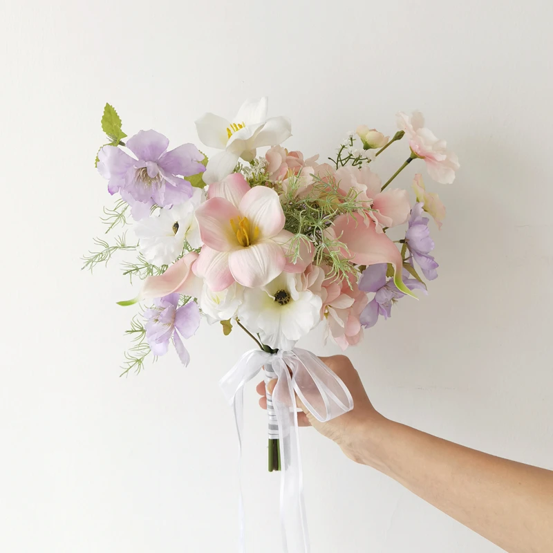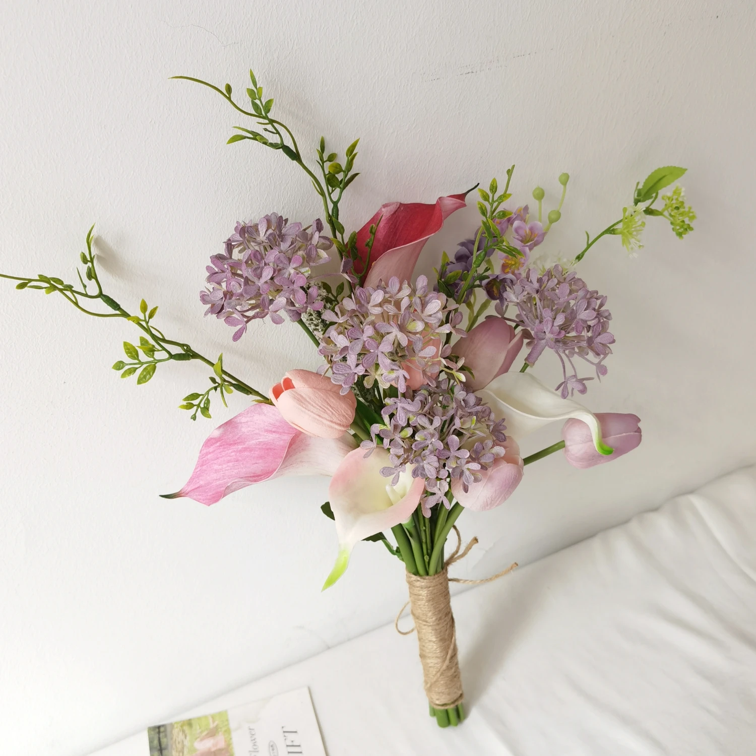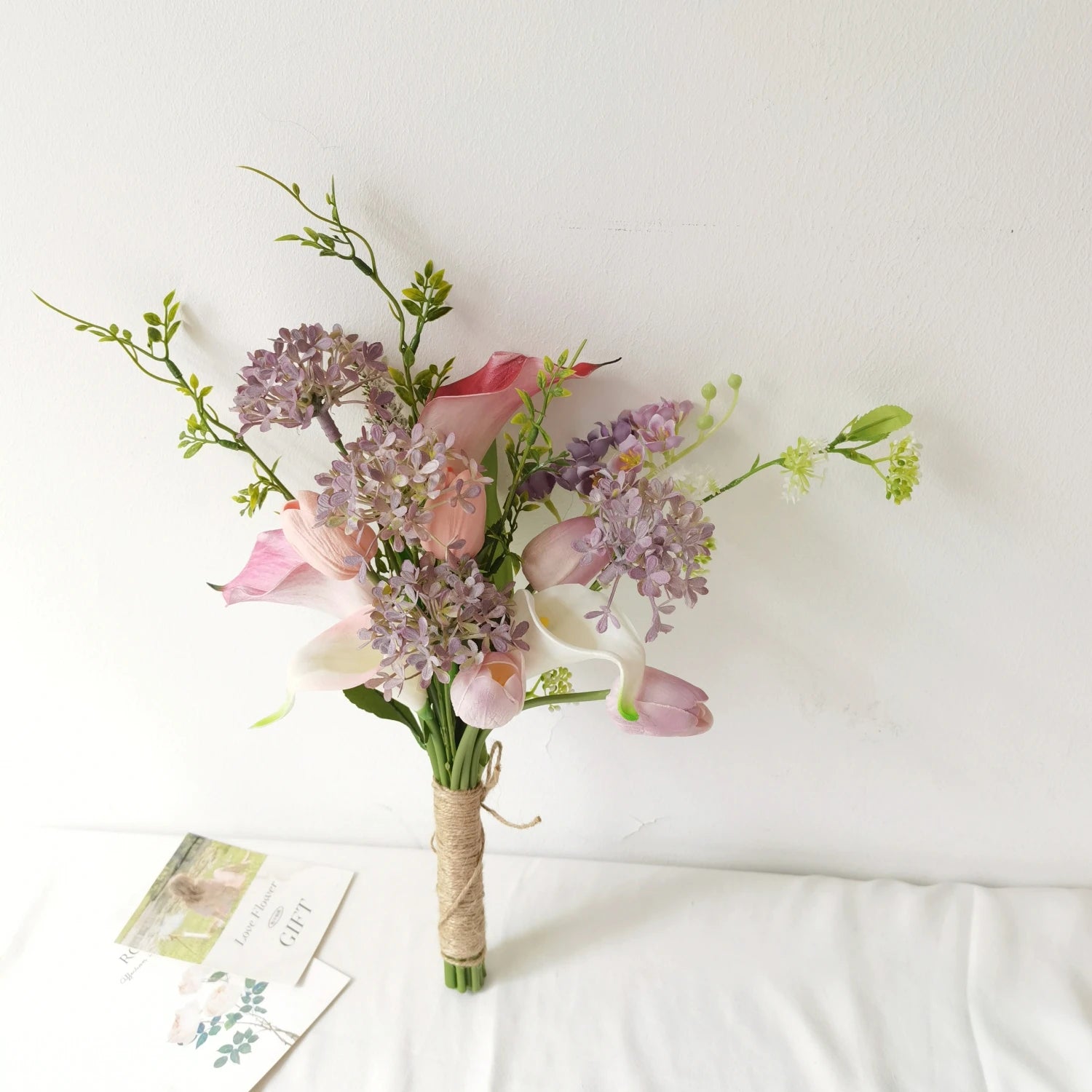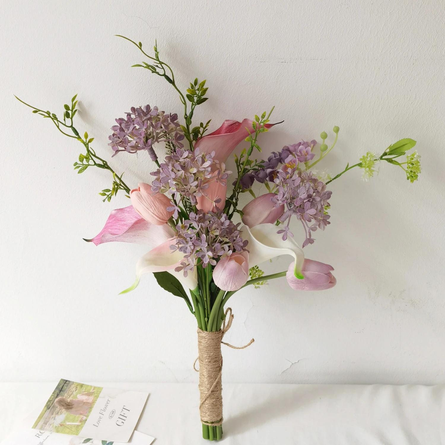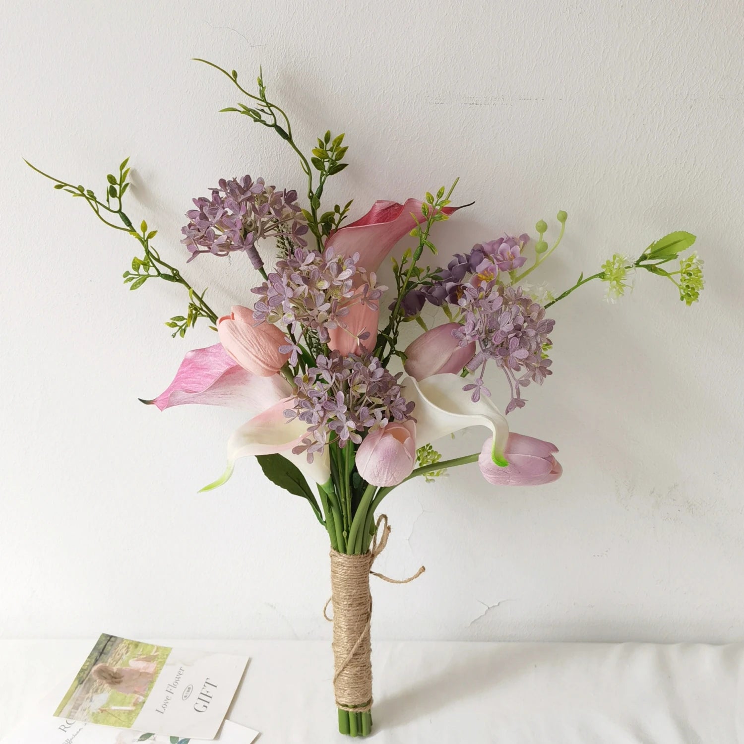 Ins Sle Purple Pink Handheld Flower Bouquet Artificial Flowers Wedding Photoaphy New Bride Home Decoration Arrangement