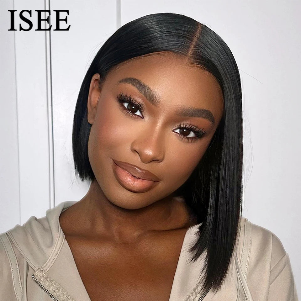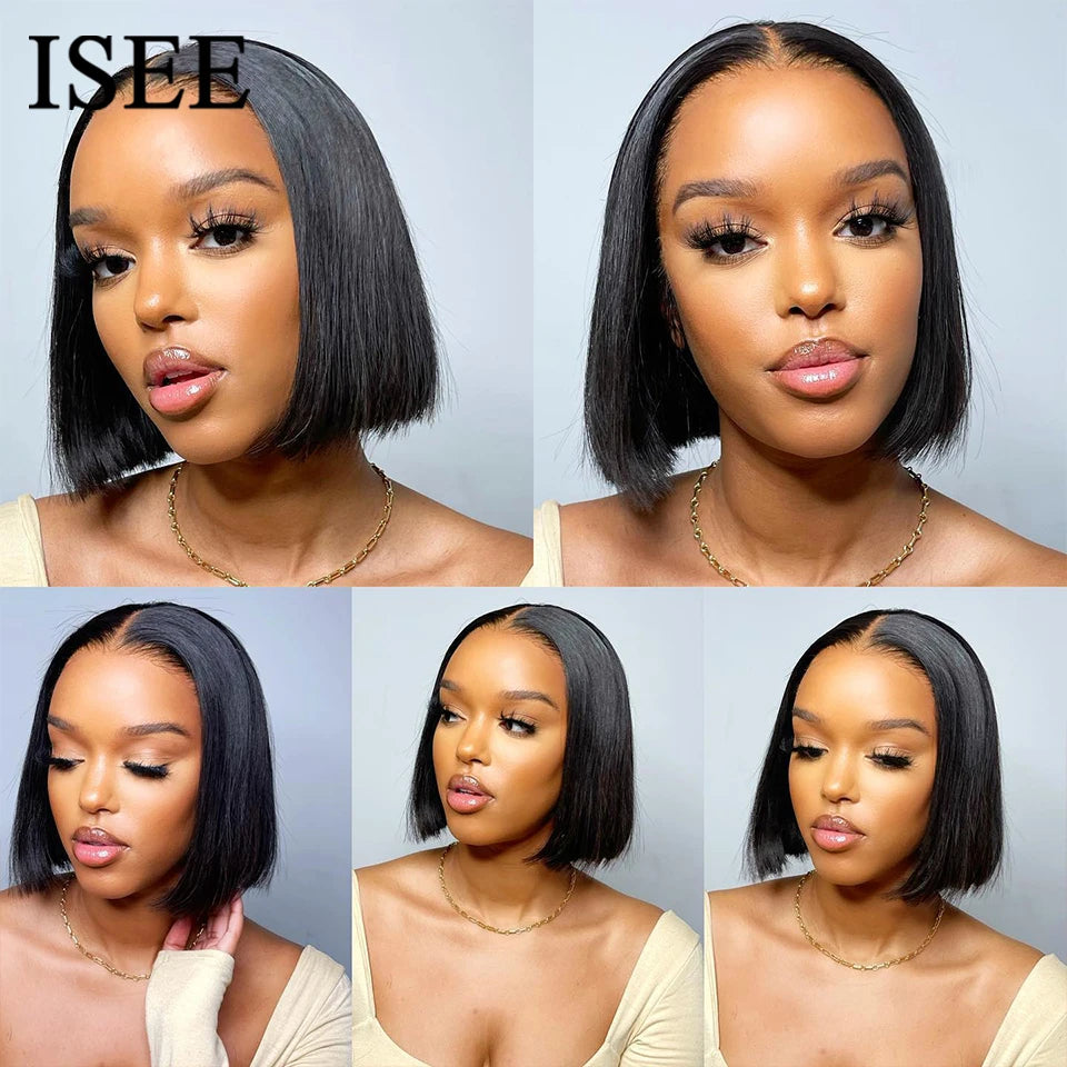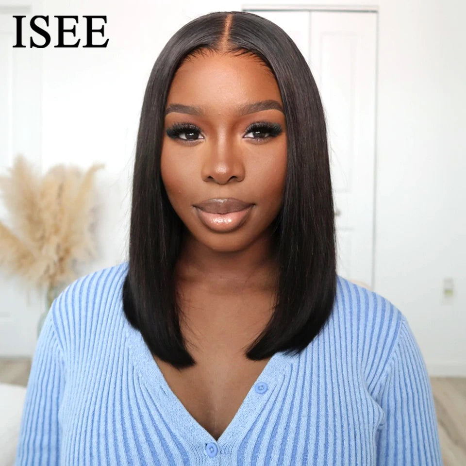 ISEE HAIR Wear And Go Glueless Human Hair Wig Bob HD Lace Straight Short Bob 6x4 Lace Frontal Pre Plucked Human Wigs Ready To Go