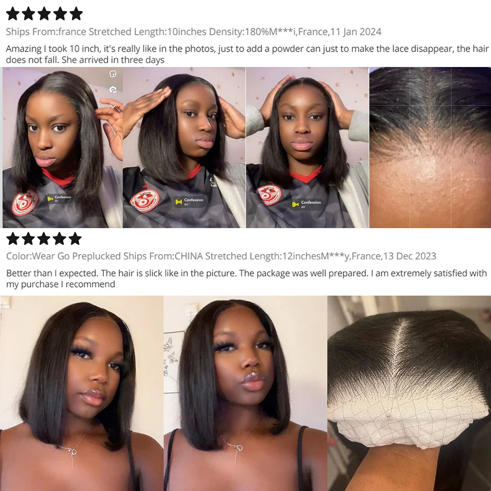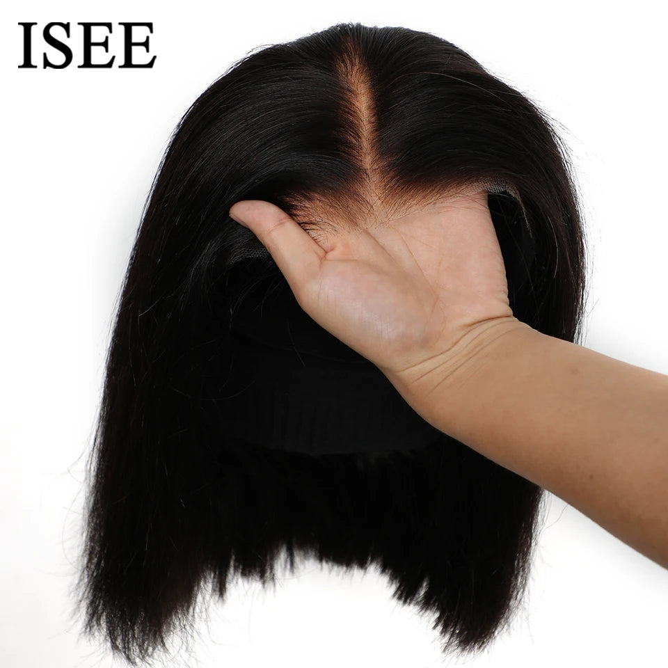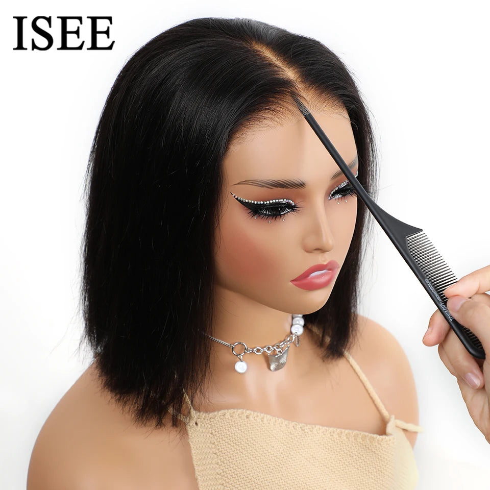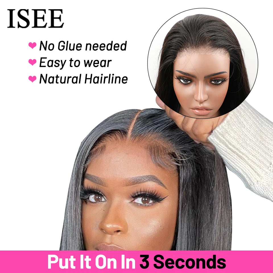 ISEE HAIR Wear And Go Glueless Human Hair Wig Bob HD Lace Straight Short Bob 6x4 Lace Frontal Pre Plucked Human Wigs Ready To Go